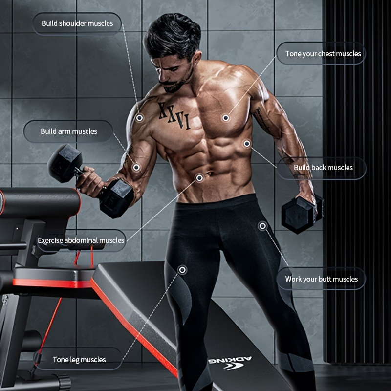 1pc Adjustable Weight Bench with Sit-Up Assistant, 13-in-1 Folding Dumbbell Workout Chair