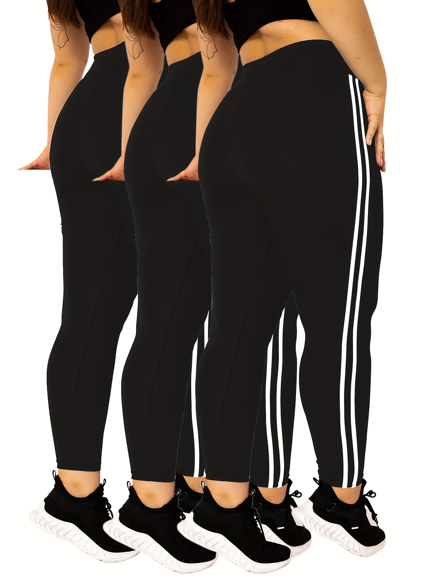 3-Pack Plus Size High-Waisted Tight-Fit Leggings