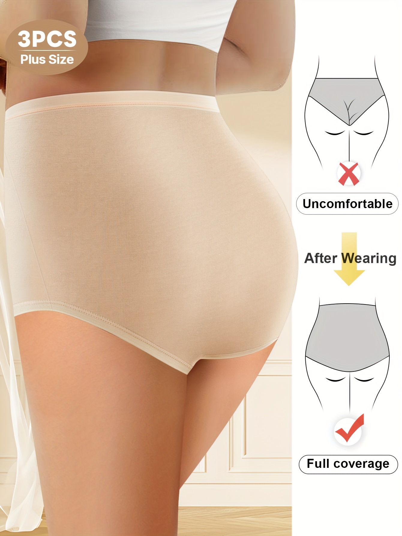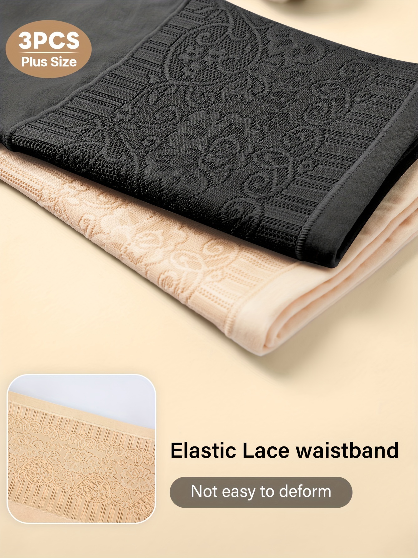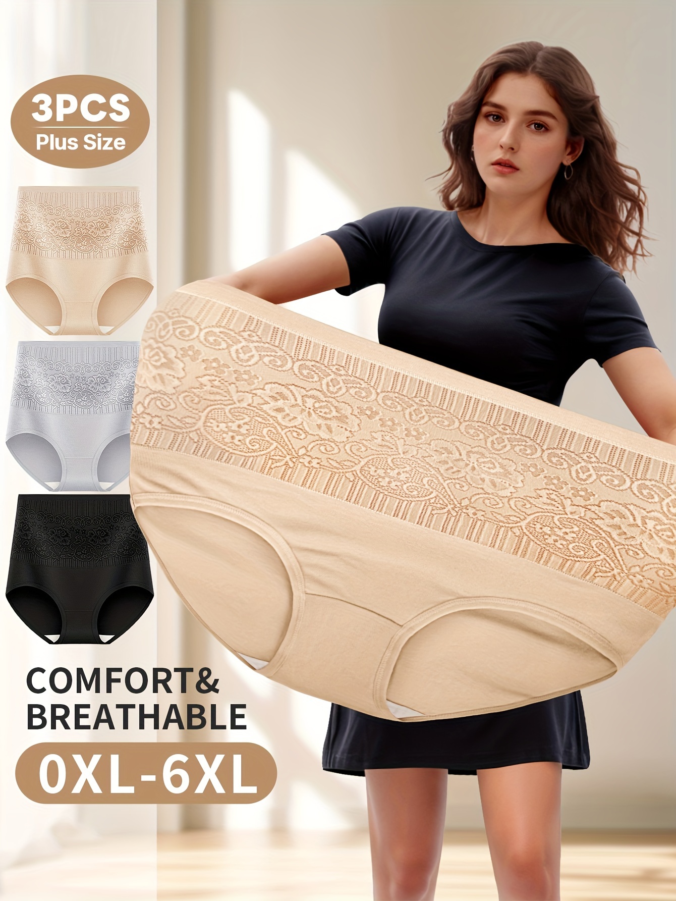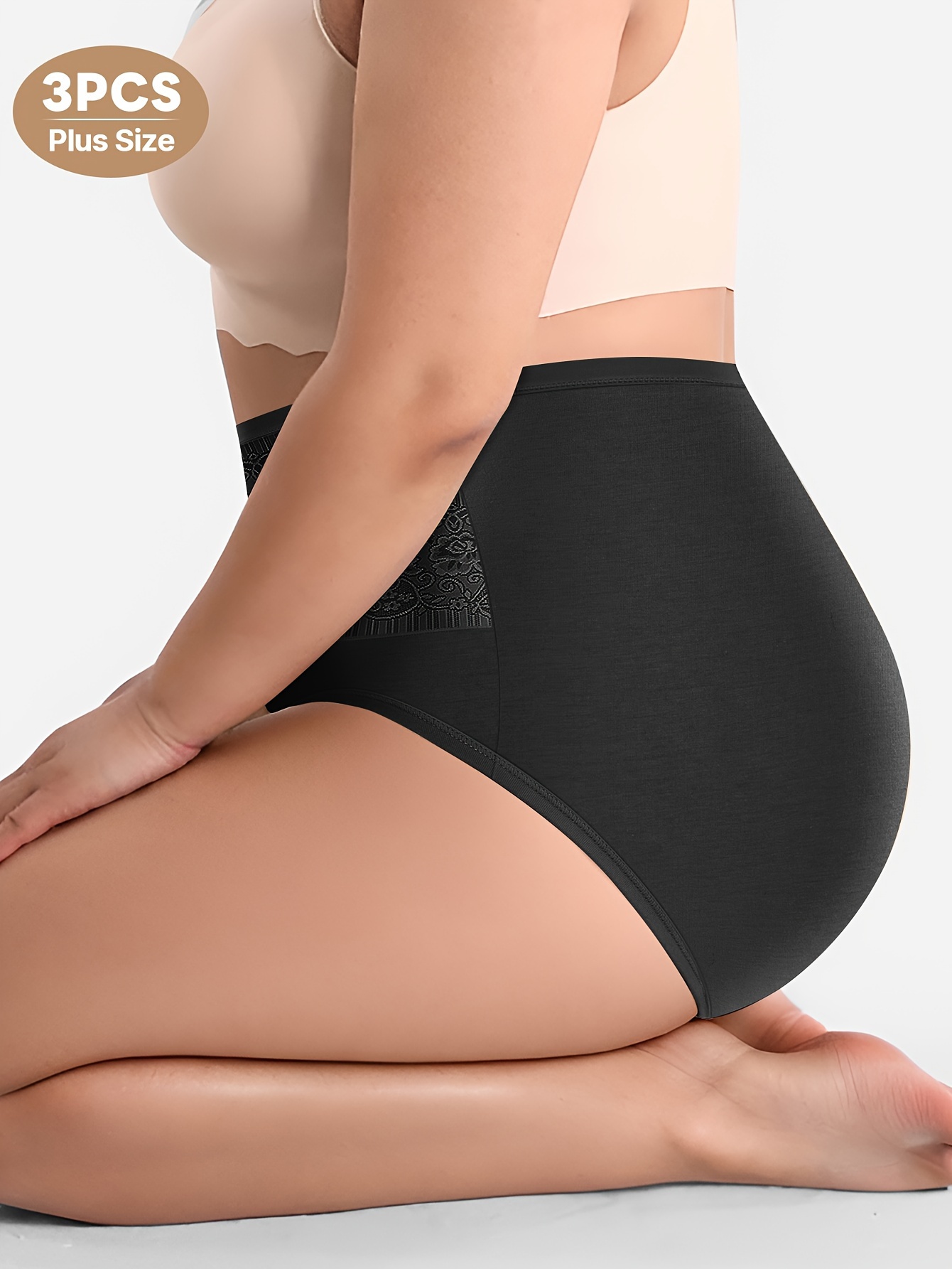 3-Pack Women's Plus Size High-Waisted Panties with Floral Patchwork