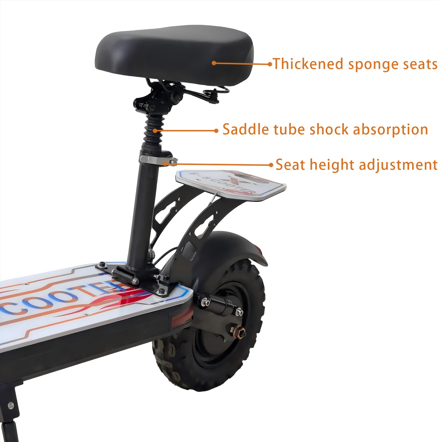 Premium Safety: Front+rear disc brakes + hydraulic suspension system for stable braking