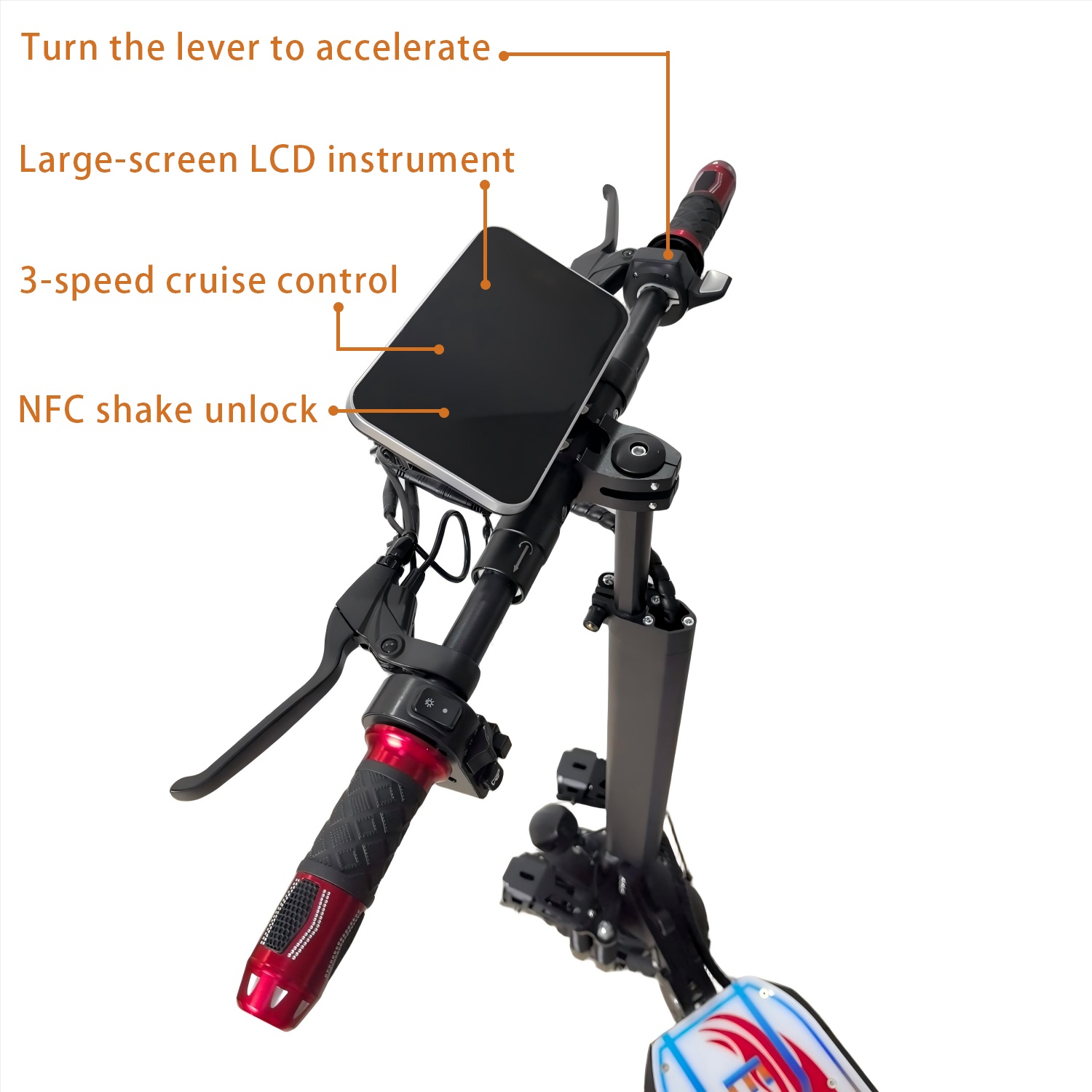 Smart Features: NFC keyless start + LED dashboard displaying speed/battery in real-time