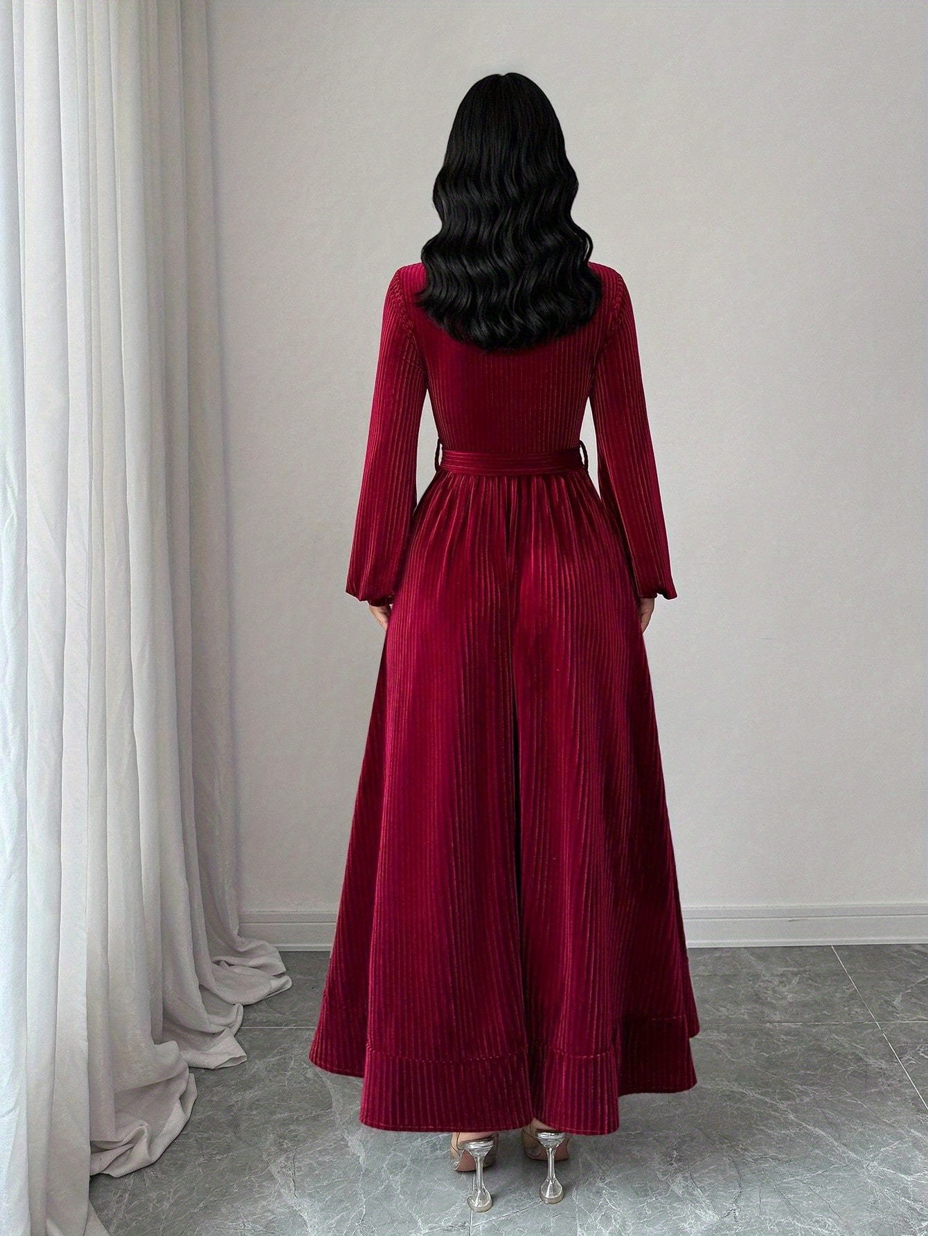 Burgundy Velvet Pearl Dress, Christmas Day, Fall-Winter