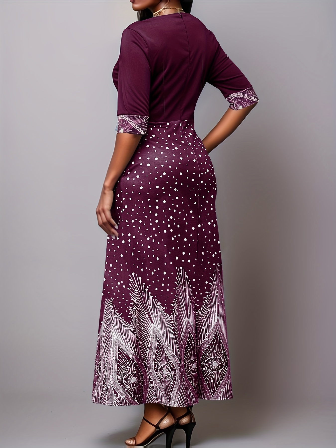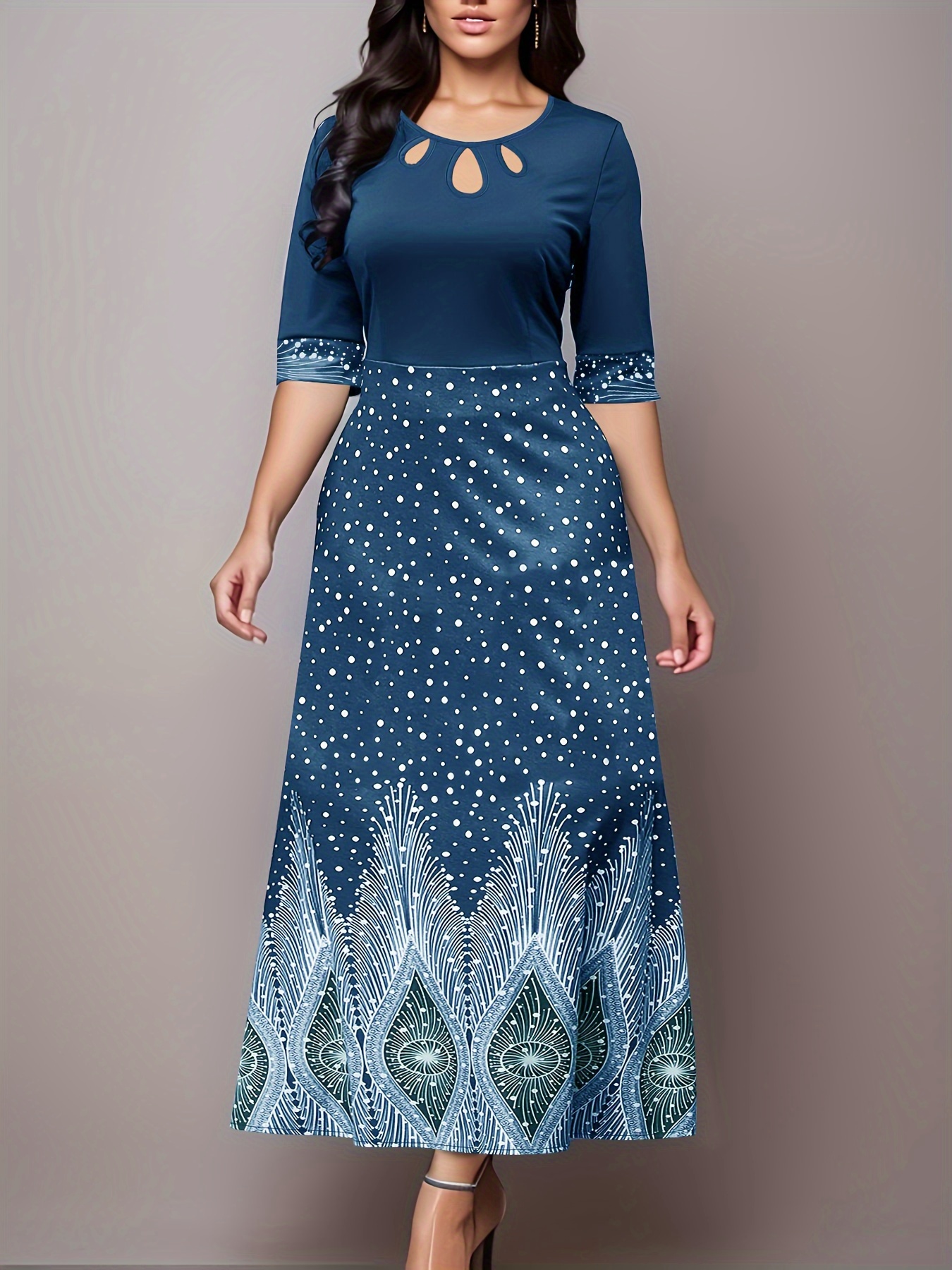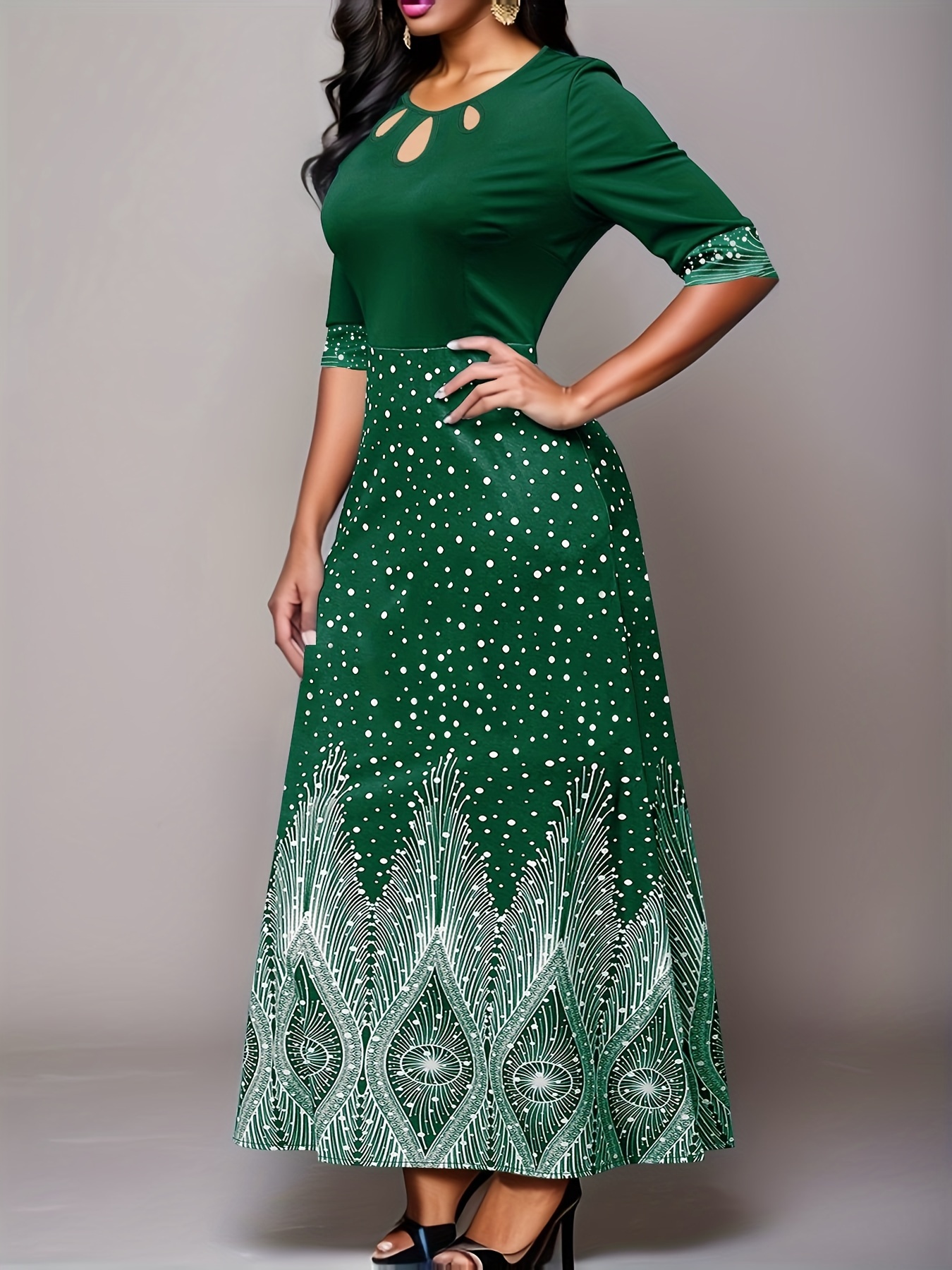 Elegant Floral Print Cut Out Party & Banquet Dress