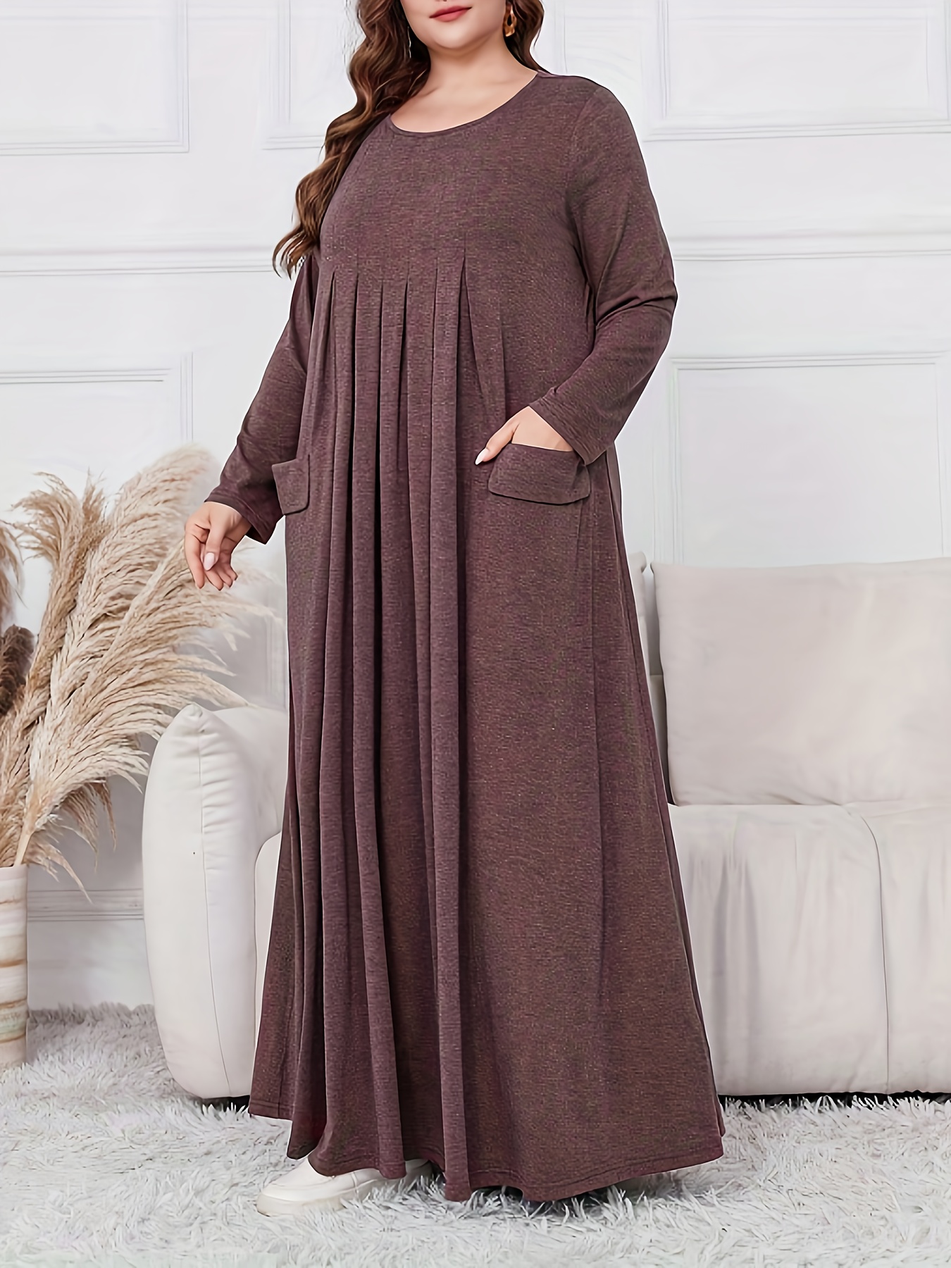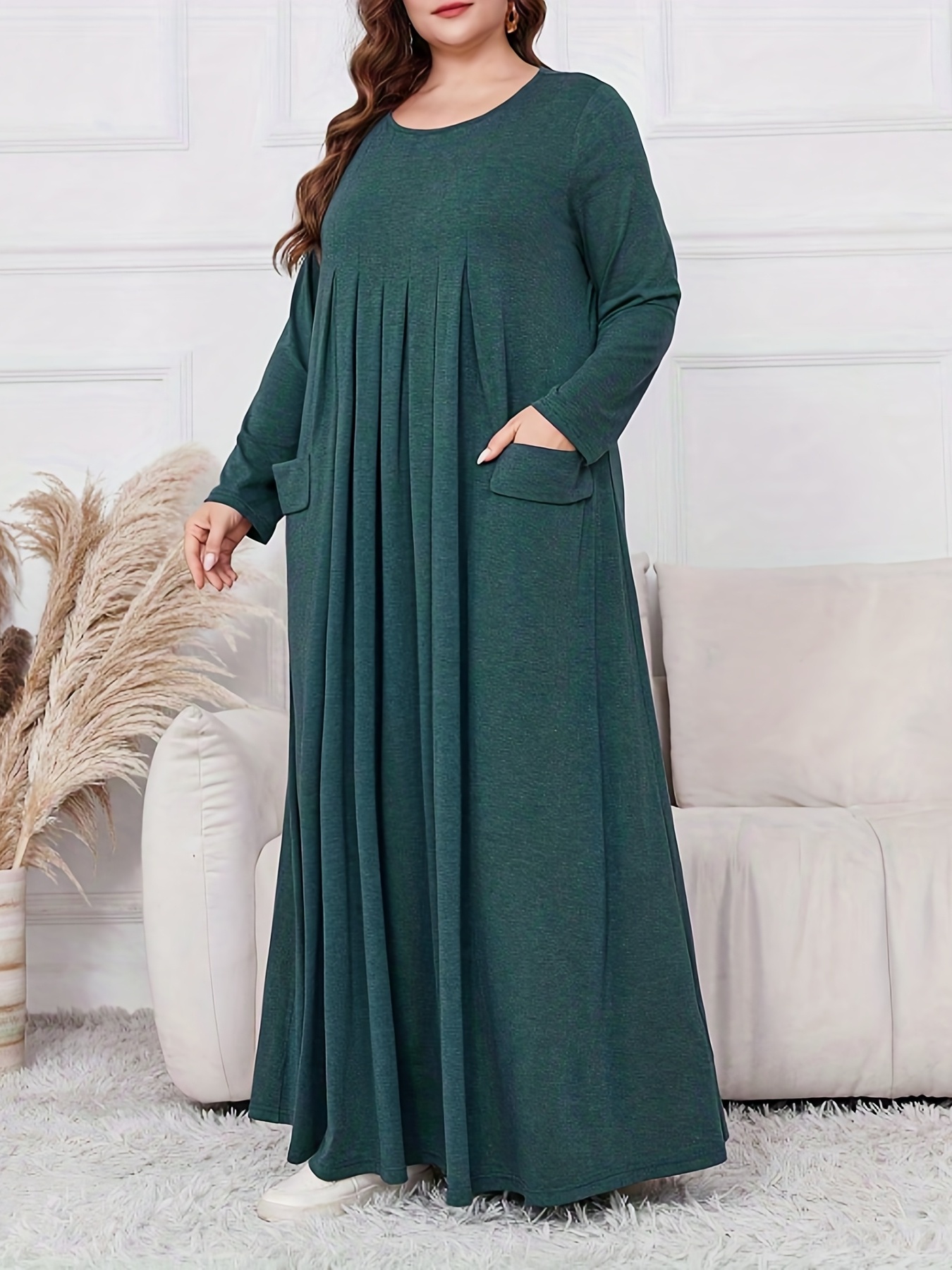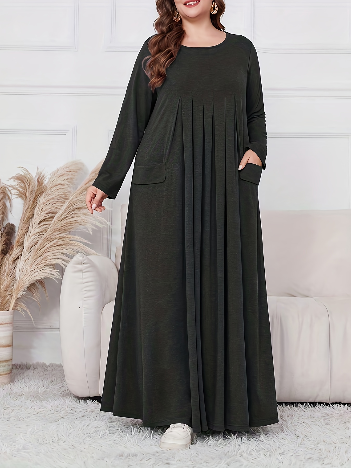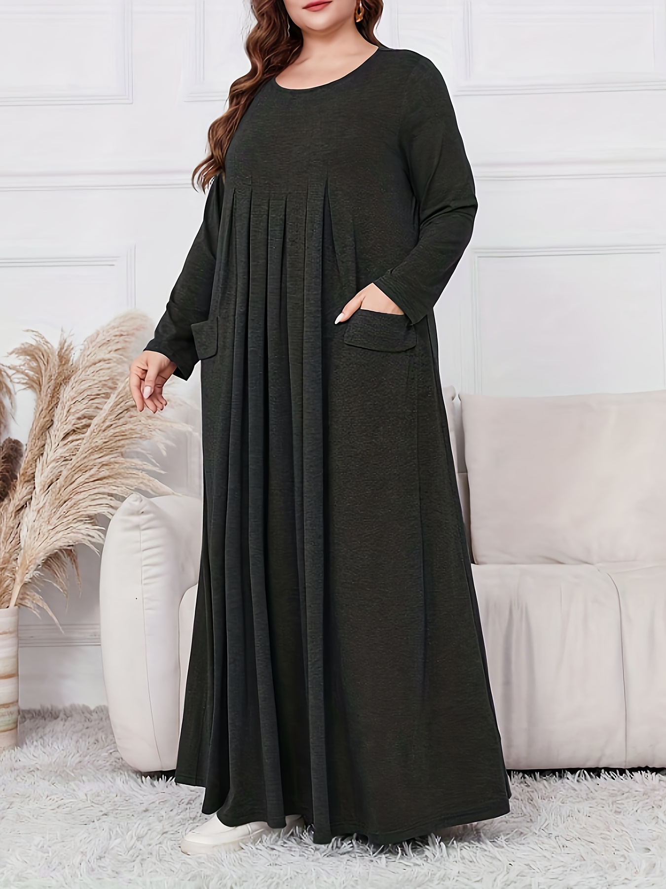 Elegant Plus Size Women's Long Sleeve Maxi Dress - Loose Fit