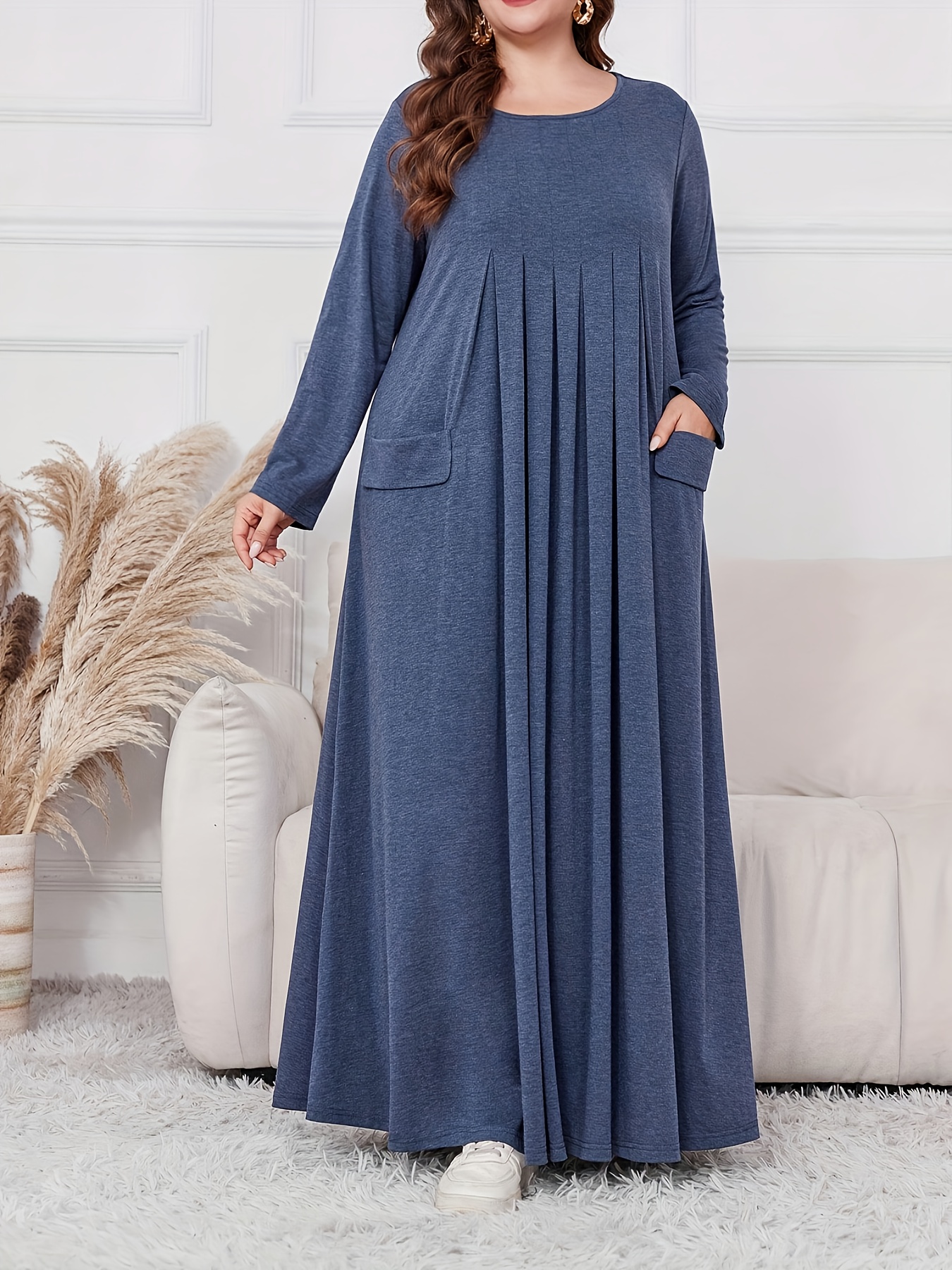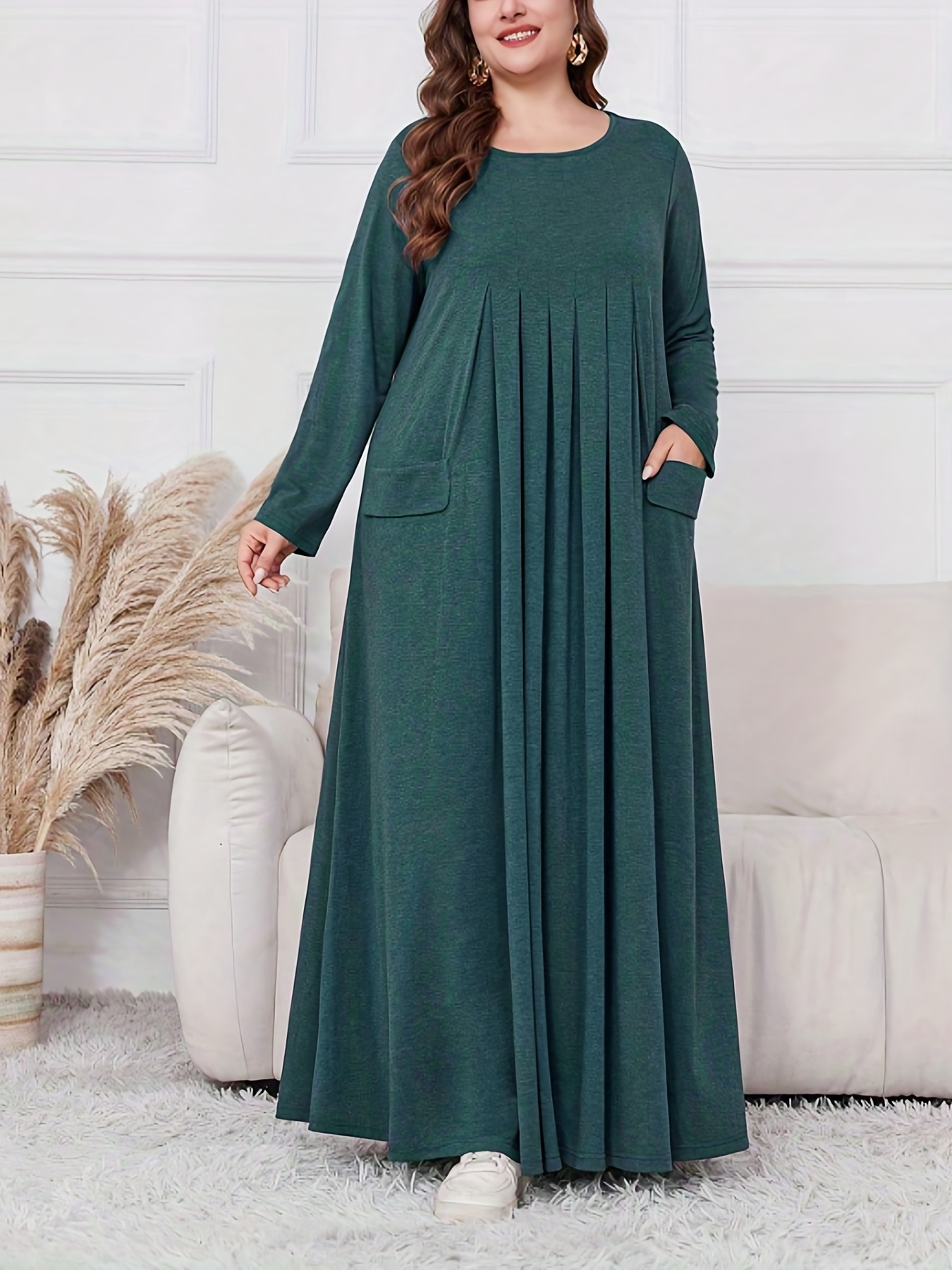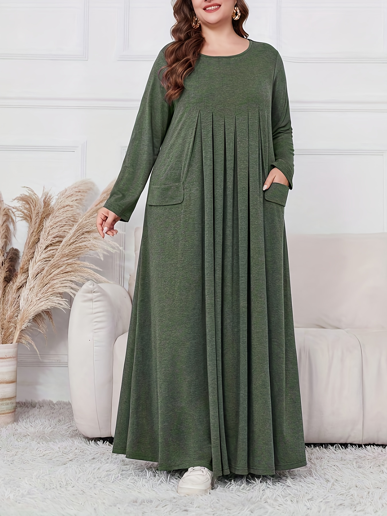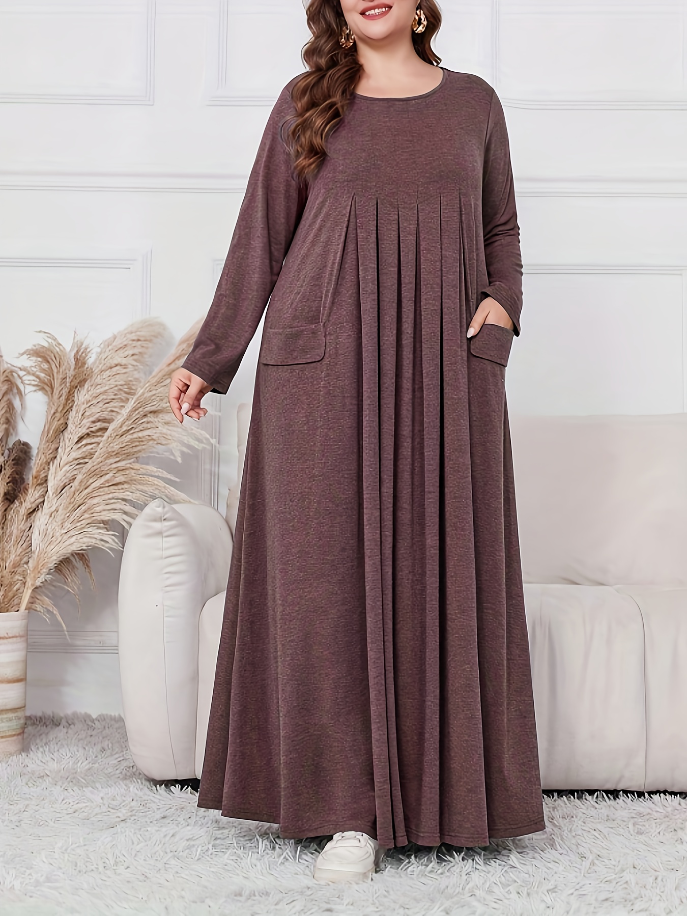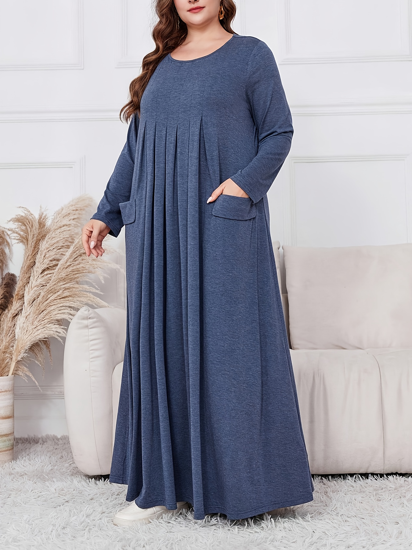 Elegant Plus Size Women's Long Sleeve Maxi Dress - Loose Fit
