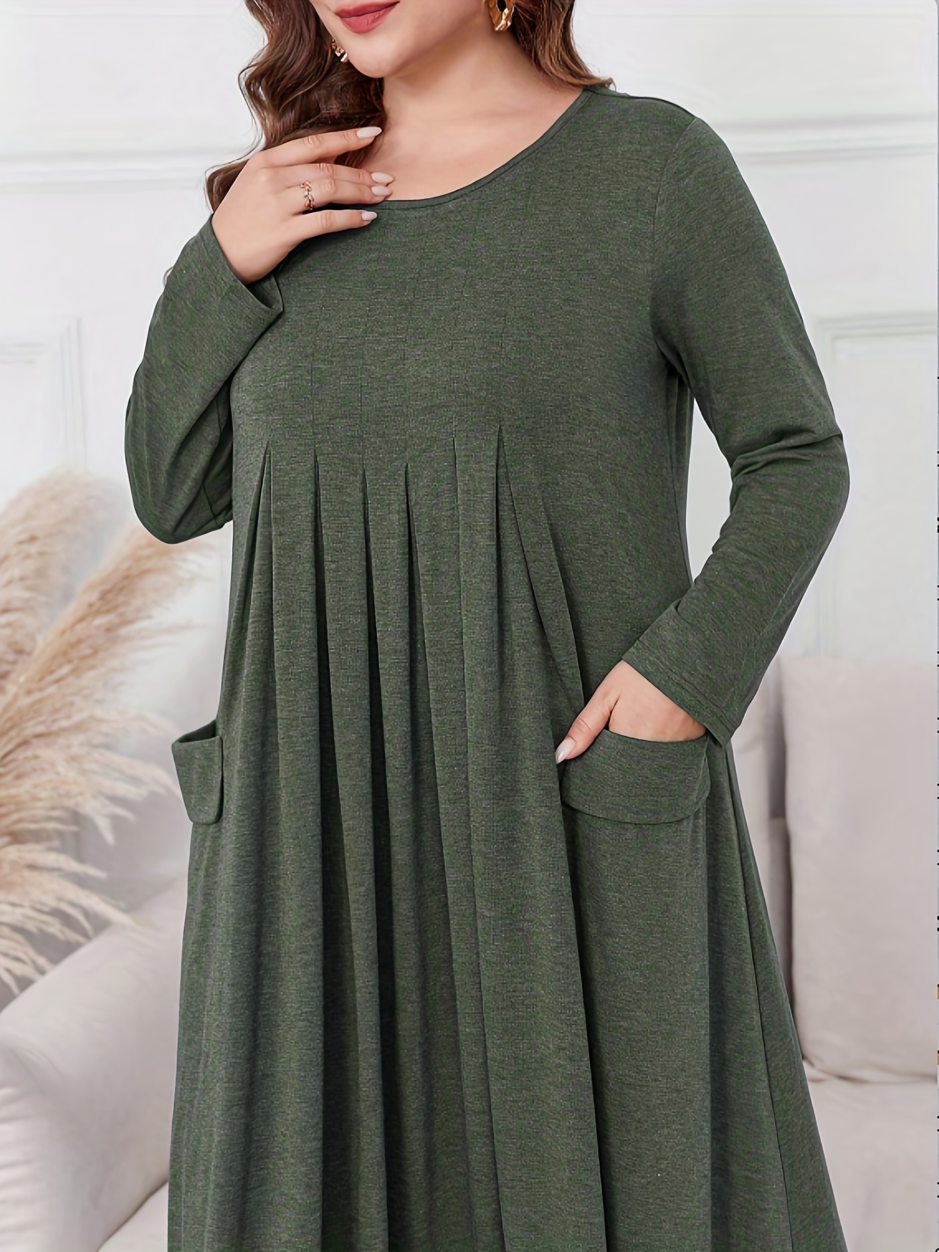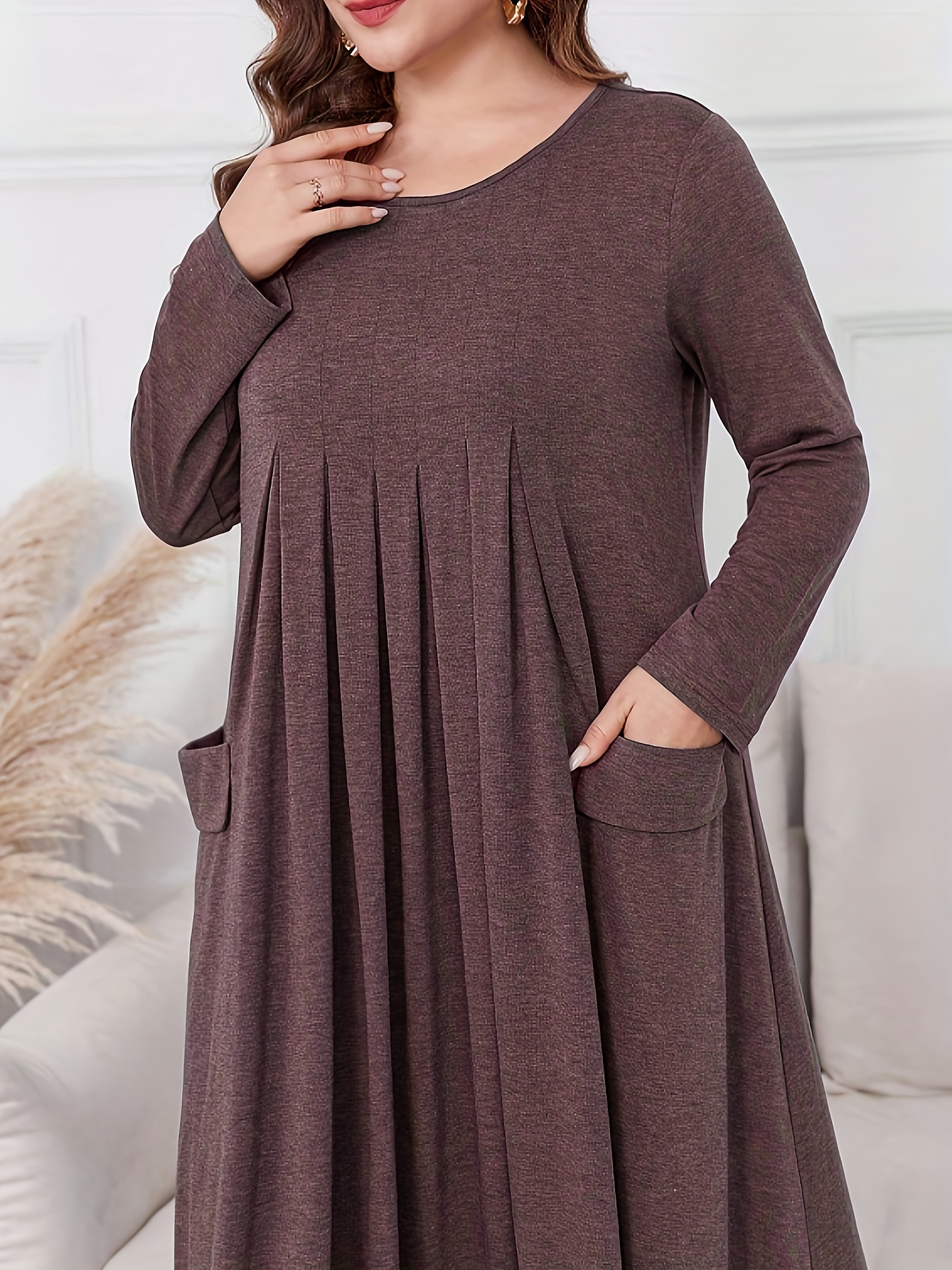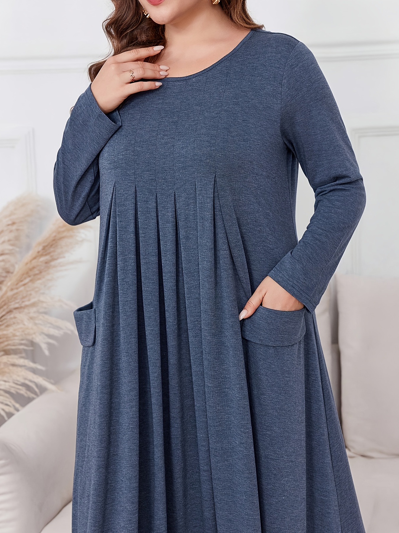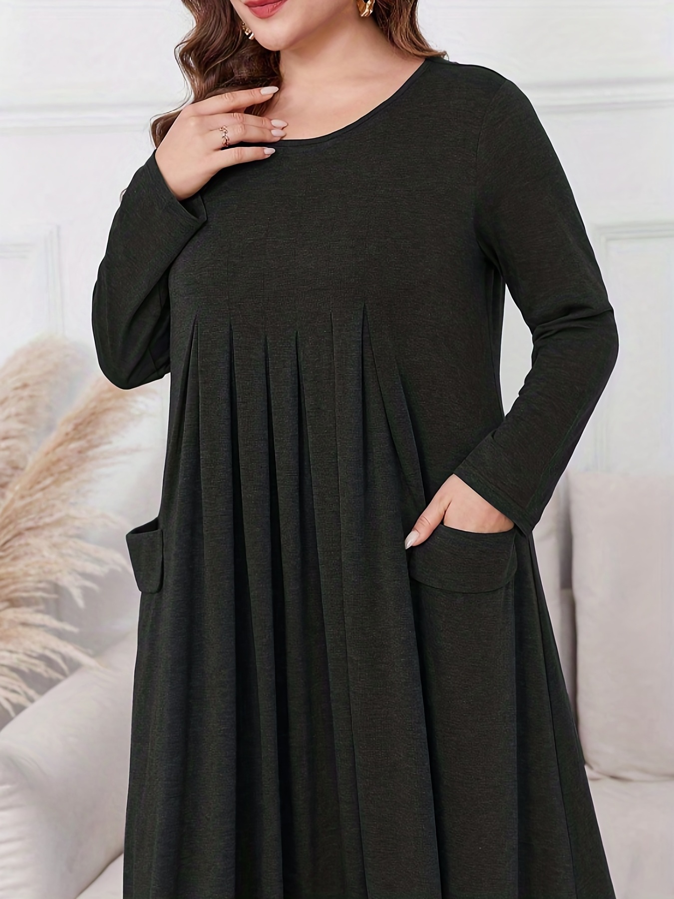 Elegant Plus Size Women's Long Sleeve Maxi Dress - Loose Fit