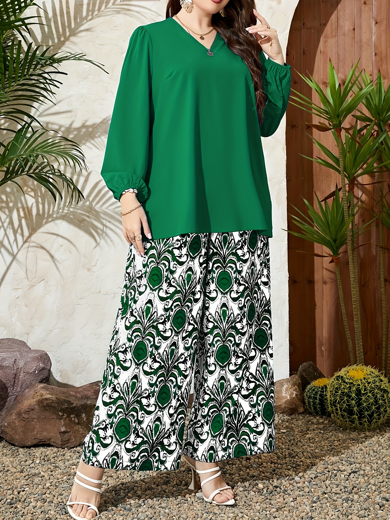 Elegant Plus-Size Women's V-Neck Loose-Fit Set