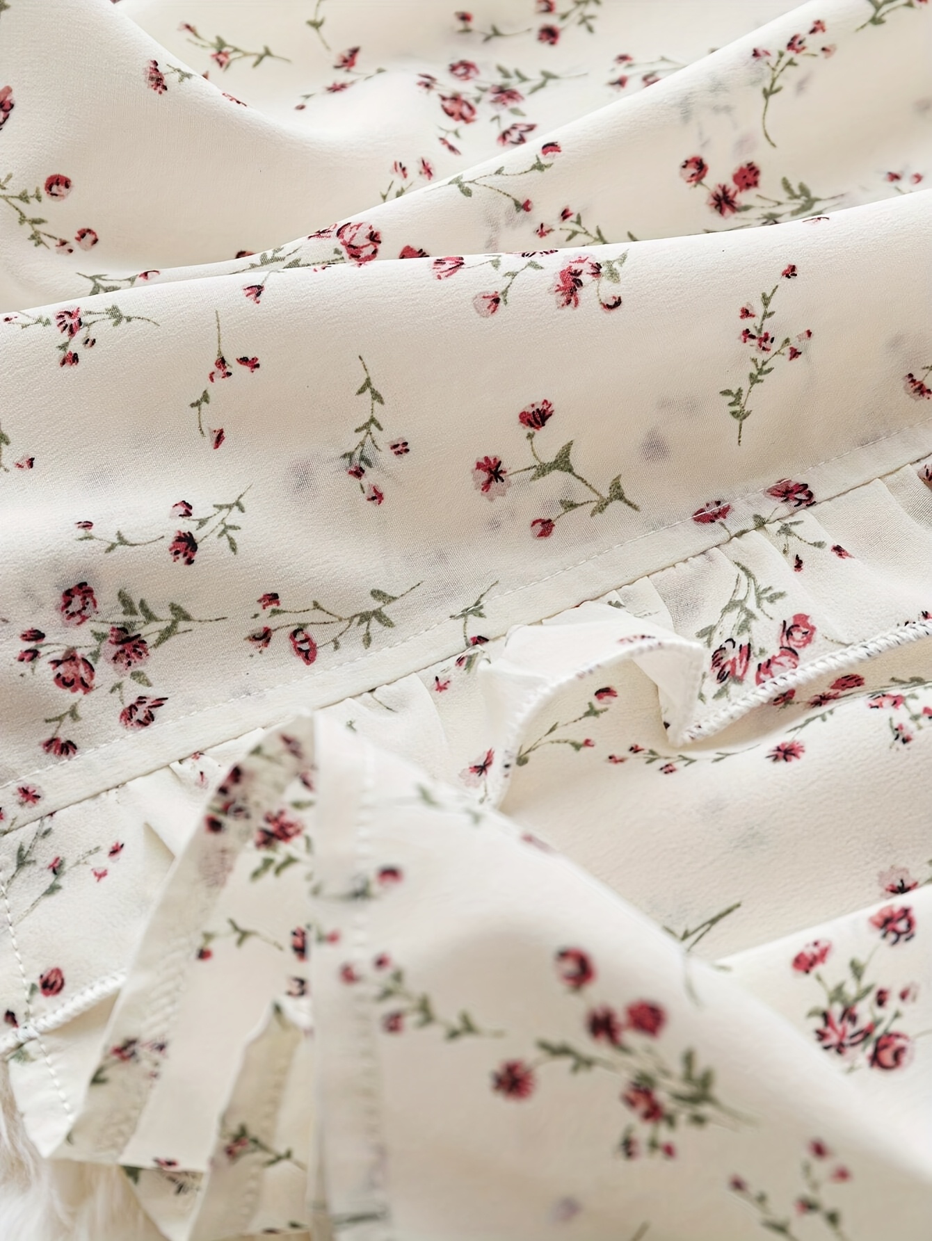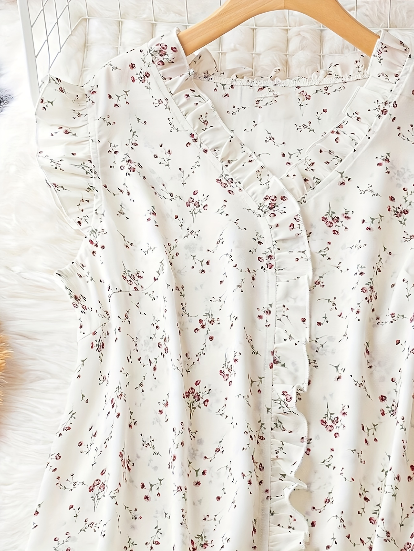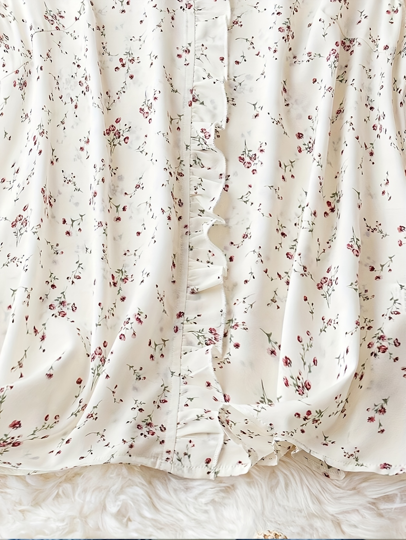 Elegant V-Neck Floral Print Blouse with Ruffled Sleeves