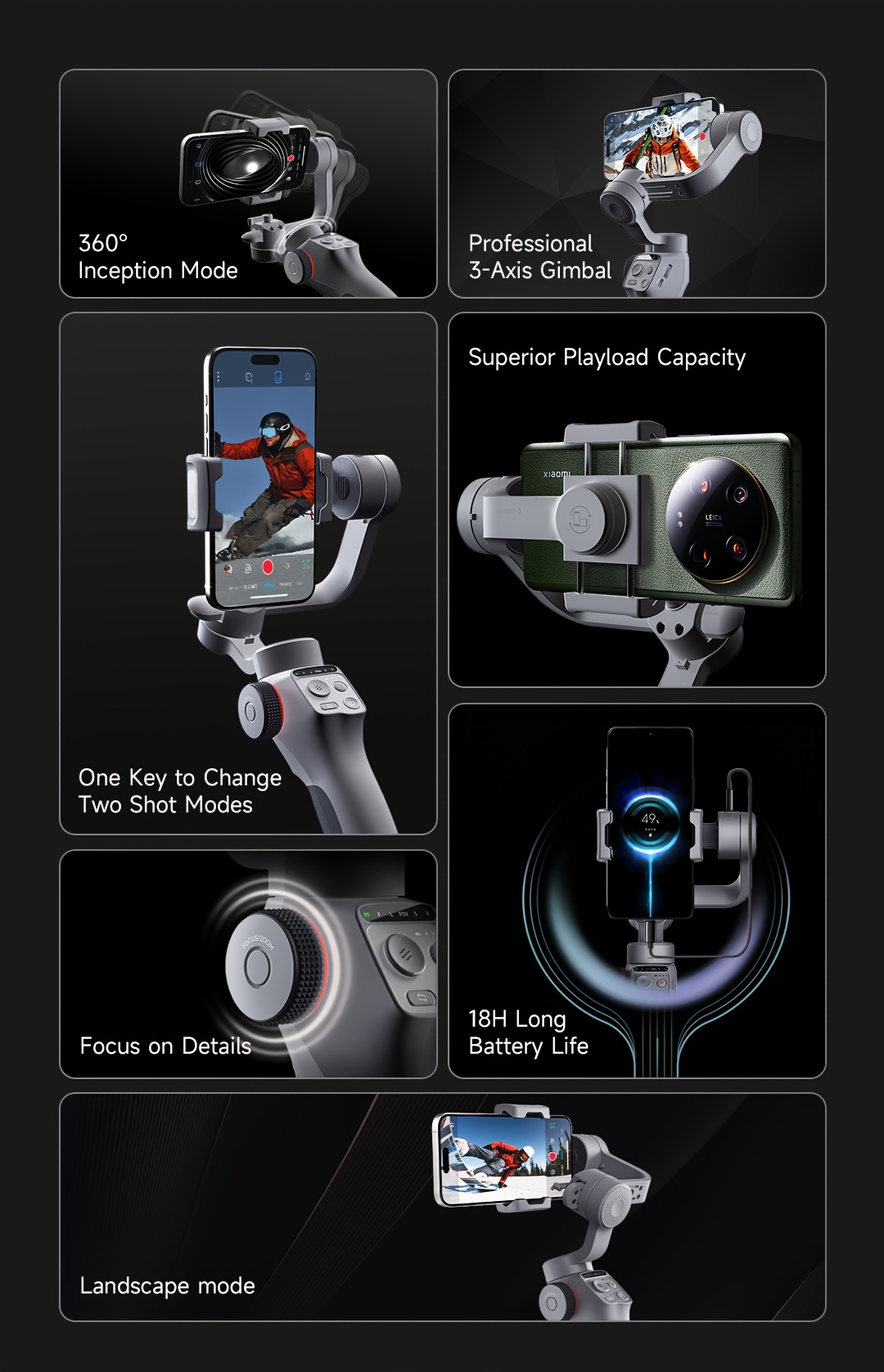 Funsnap Capture 5 Combo Kit 3-axis Smartphone Gimbal Stabilizer LCD Display 360° Rotatable