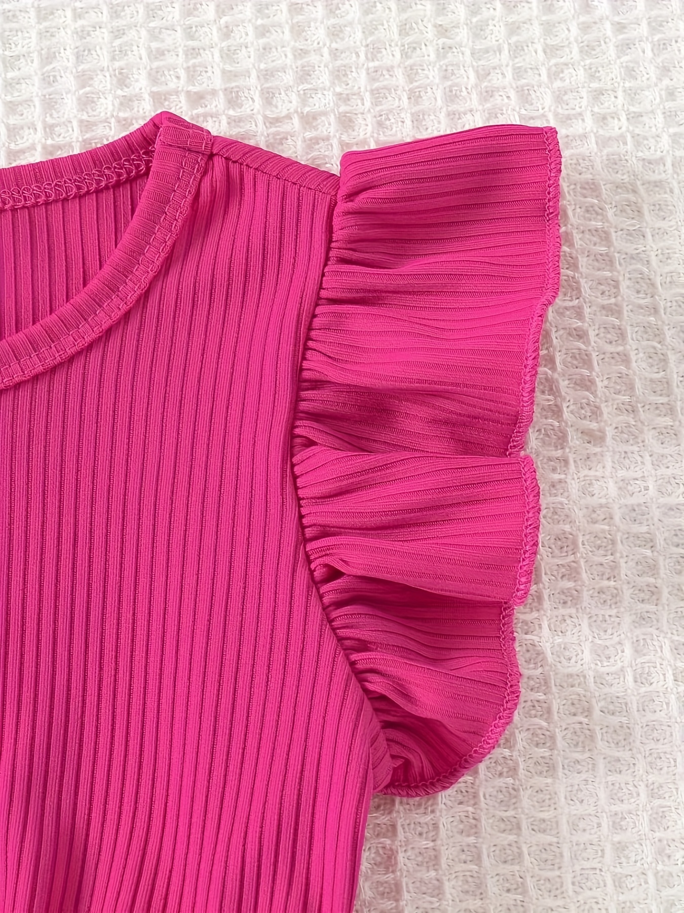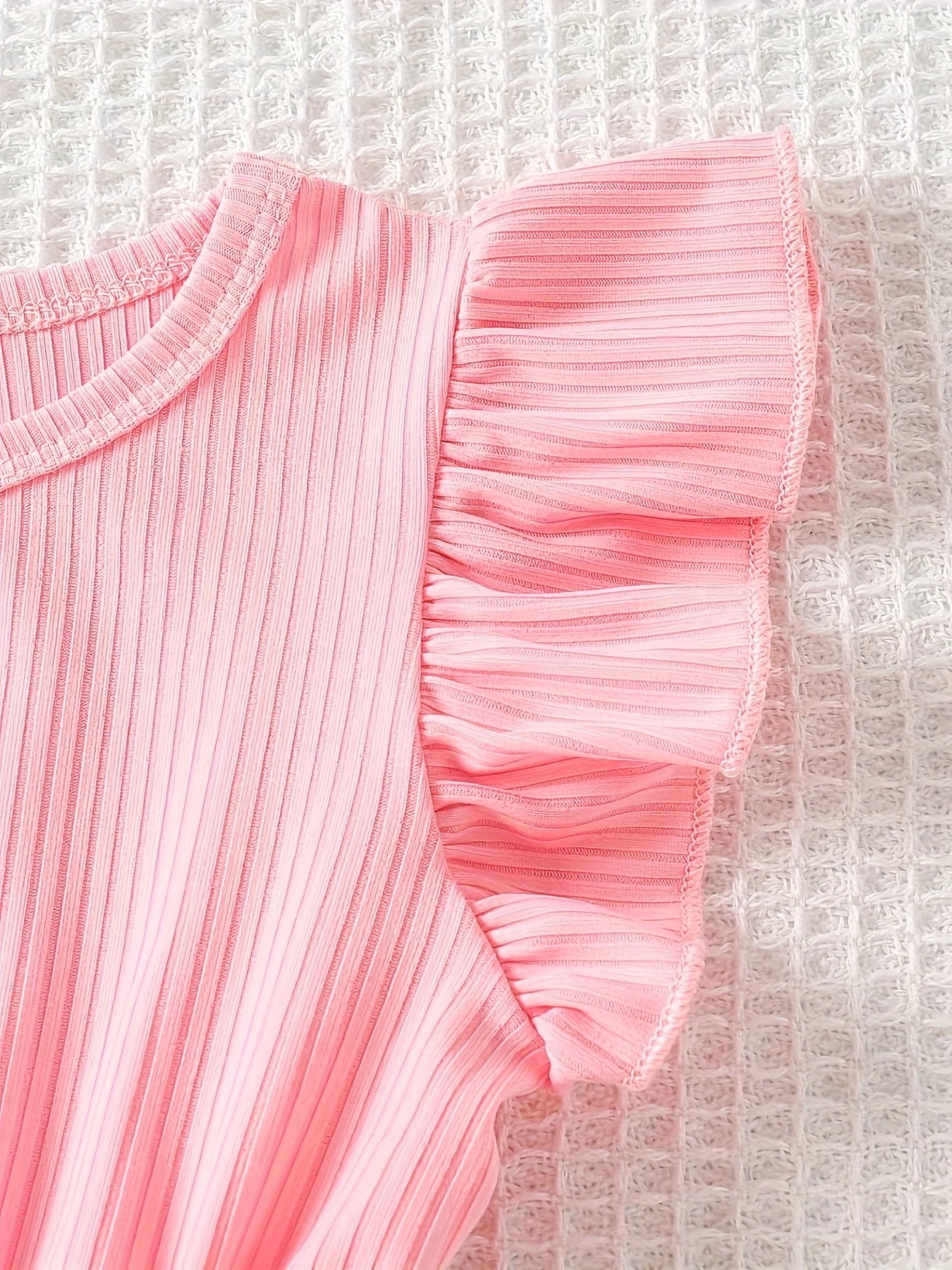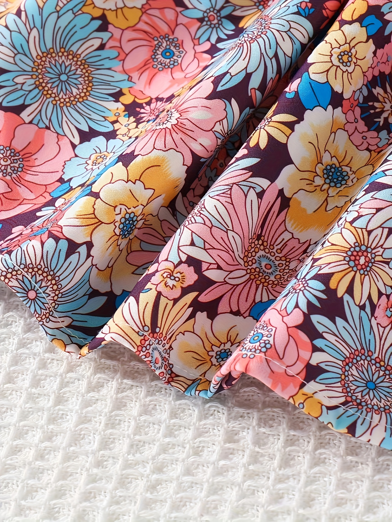 Girls' Floral Print Ruffled Sleeve Dress with Ribbon Belt