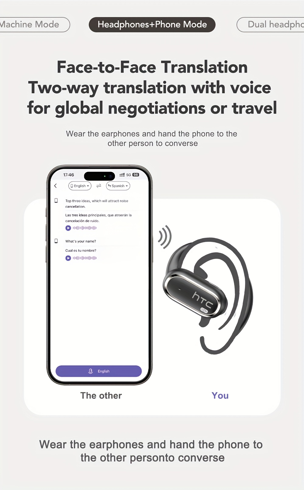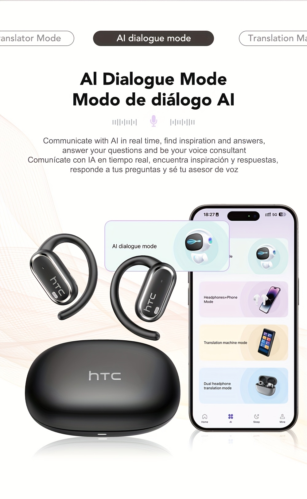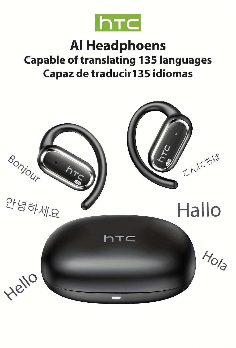 HTC NE03 Open OWS Wireless Headset Supports 135 Languages Real Real-time Translation Earbuds Call Noise Cancelling