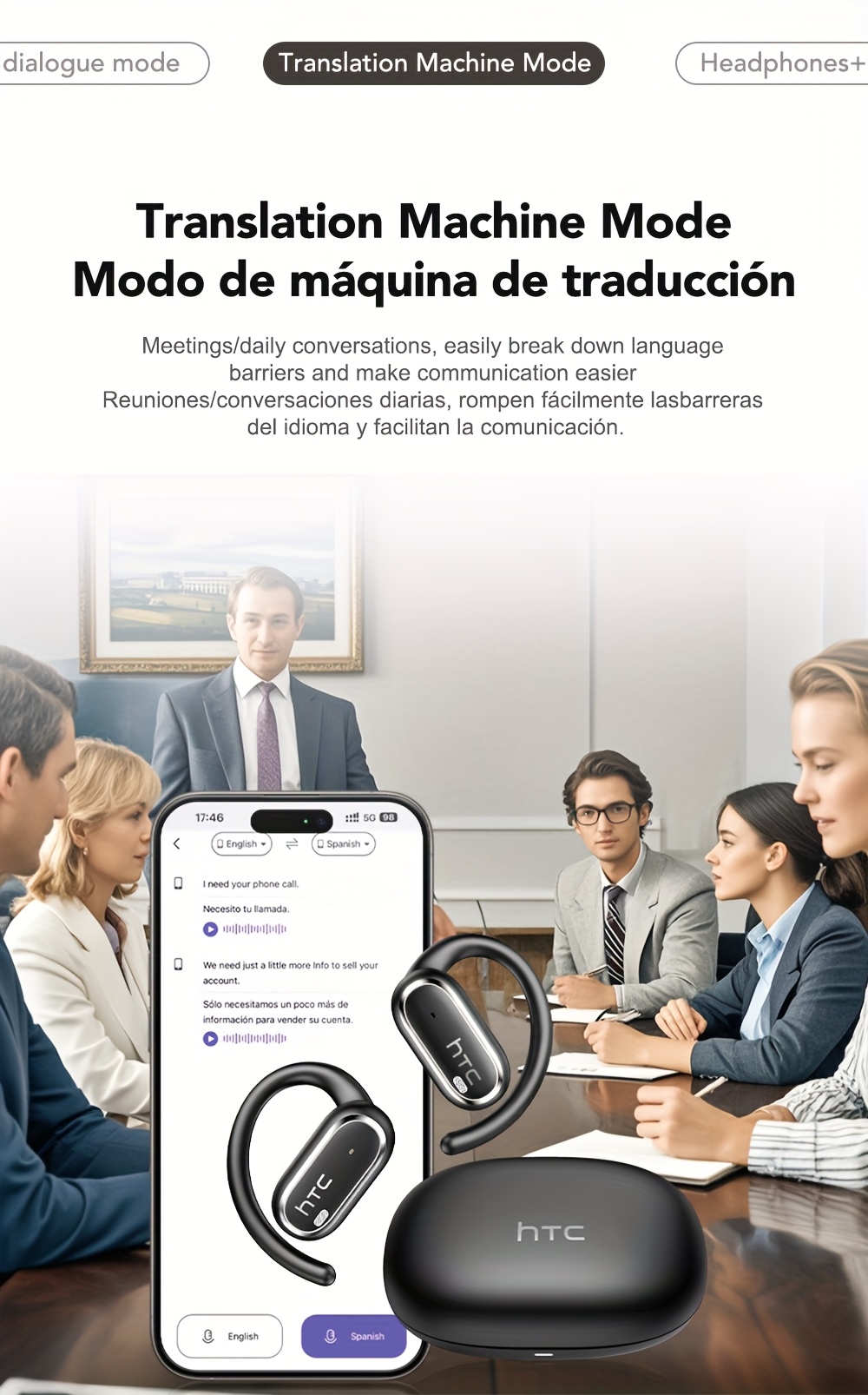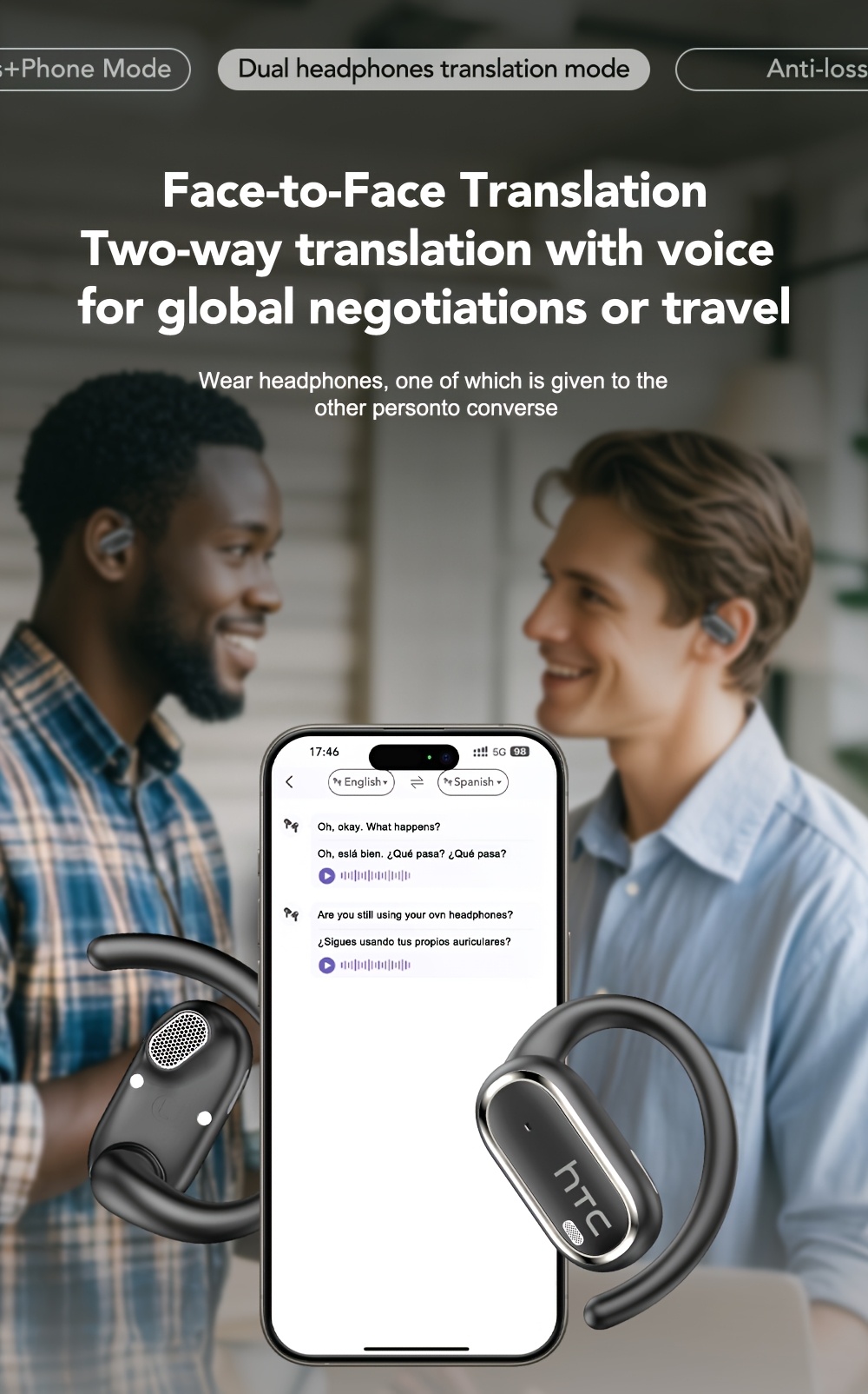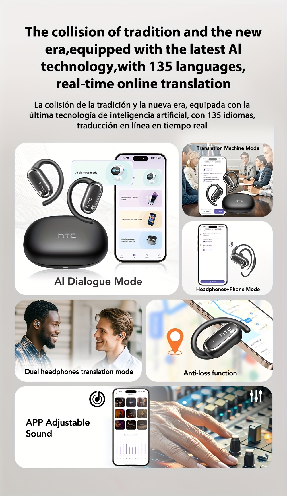 HTC NE03 Open OWS Wireless Headset Supports 135 Languages Real Real-time Translation Earbuds Call Noise Cancelling