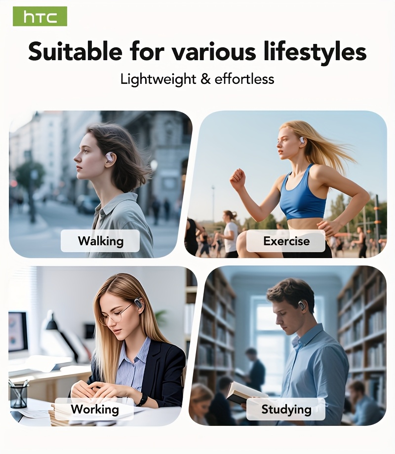 HTC NE28 Open-Source OWS Translation Earbuds with 6.0 Low Latency, Wireless, USB Charging, Battery