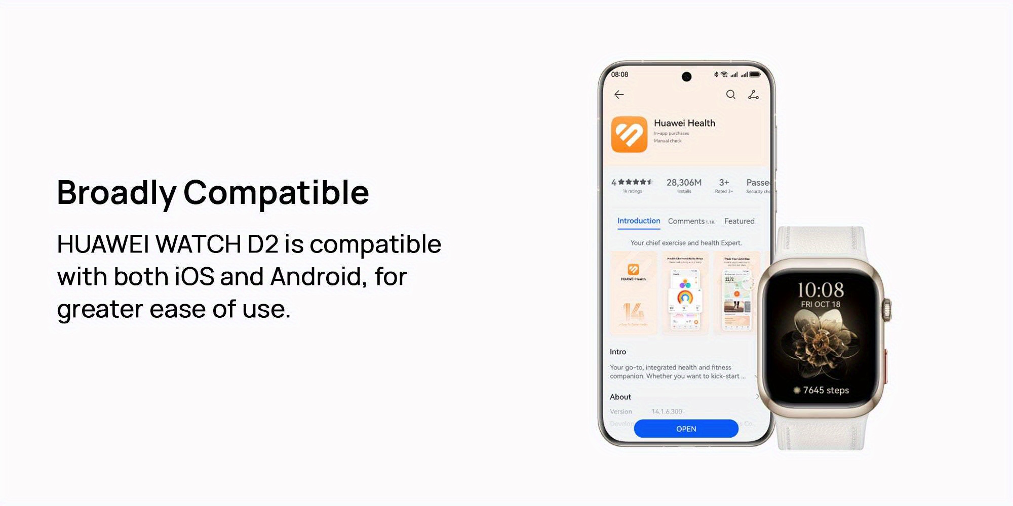Huawei Watch D2 Smartwatch with Monitoring, 1.82” AMOLED HD Display, Wireless Calling, /Sleep Tracker
