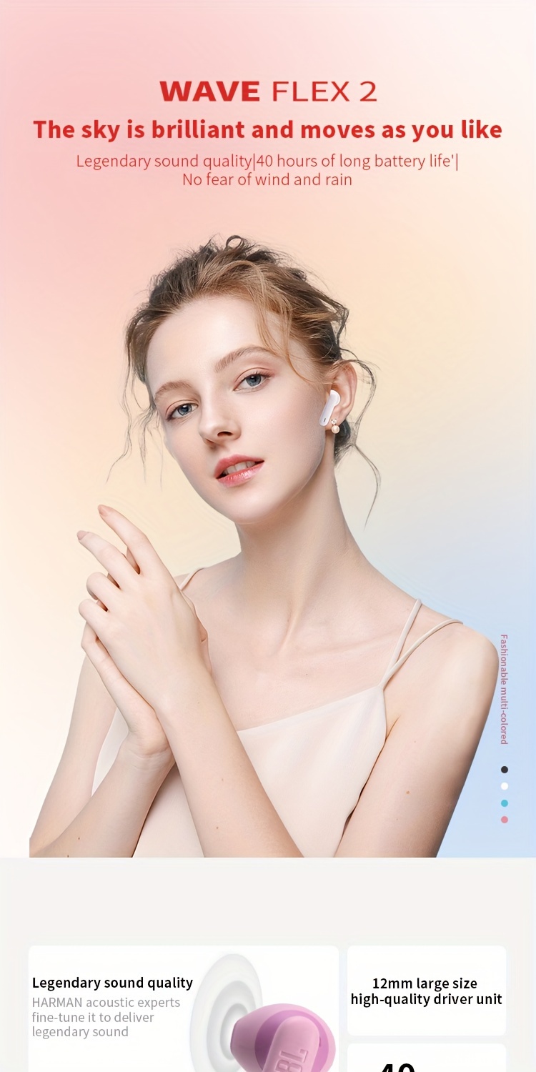 JBL WAVE FLEX 2 True Wireless Semi-in-ear Music Earbuds Call Noise Reduction Sports Game with Mic