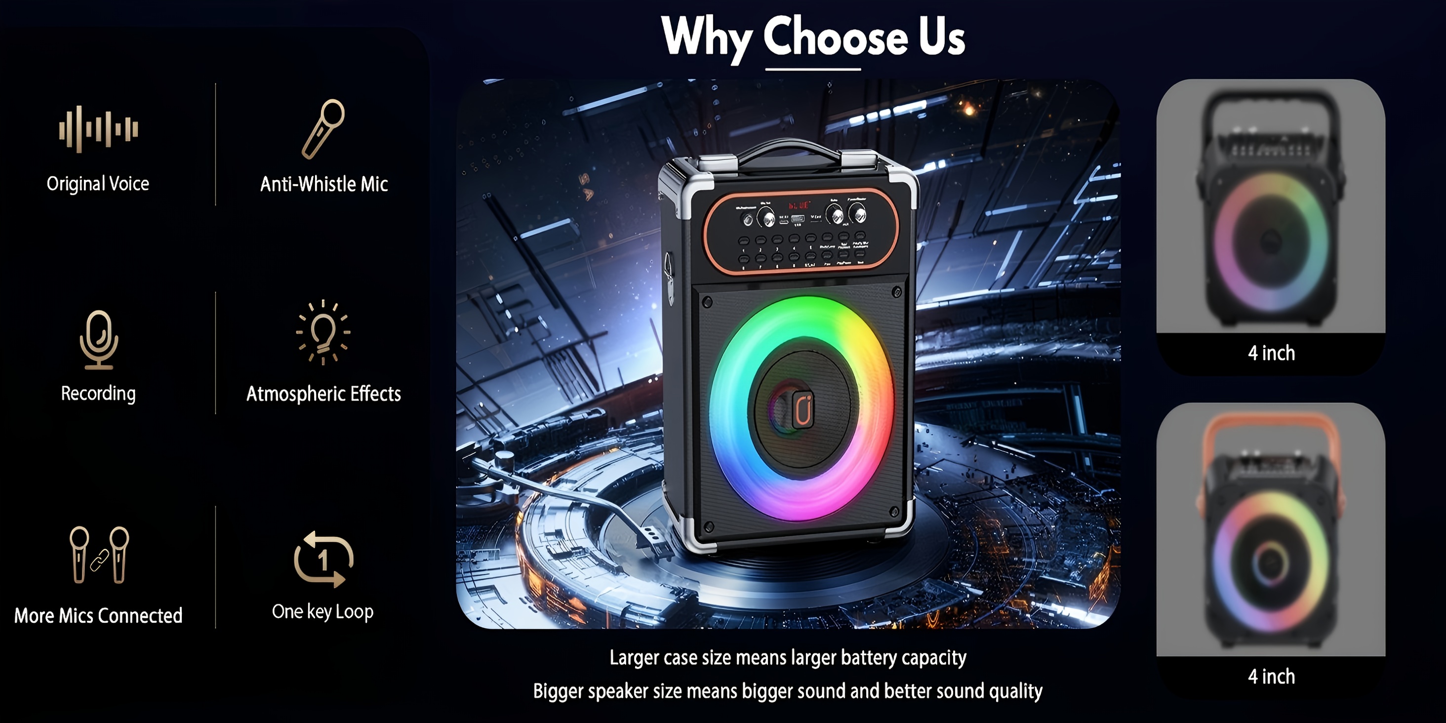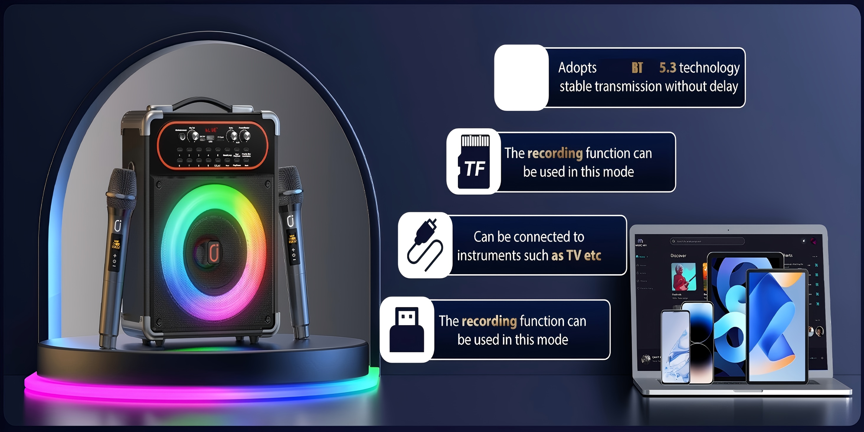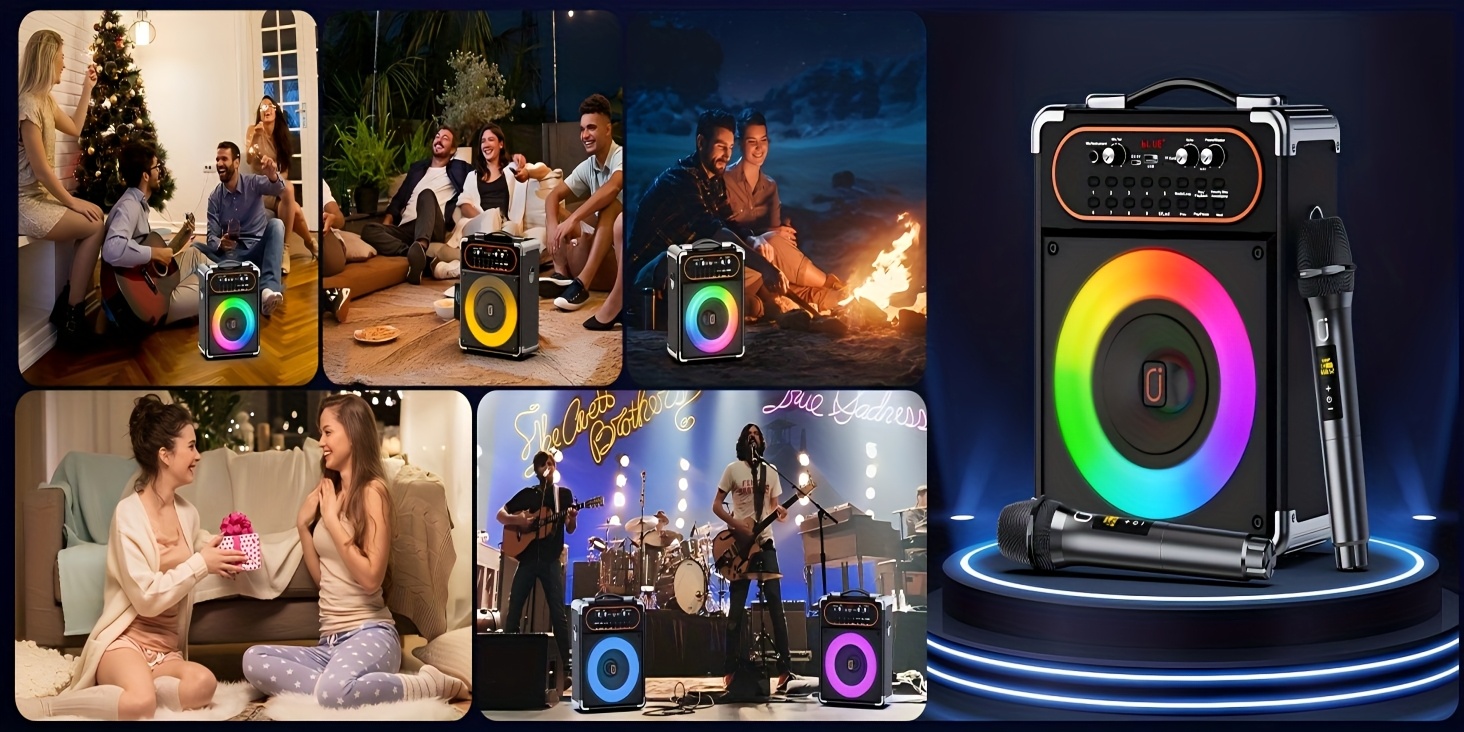 Karaoke Machine with 2 Microphones, Portable Wireless 5.3, Suitable for Outdoor Activities and Parties
