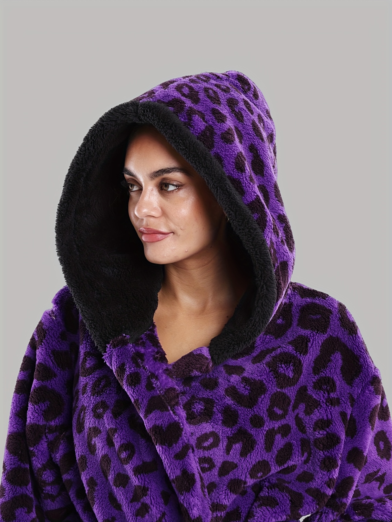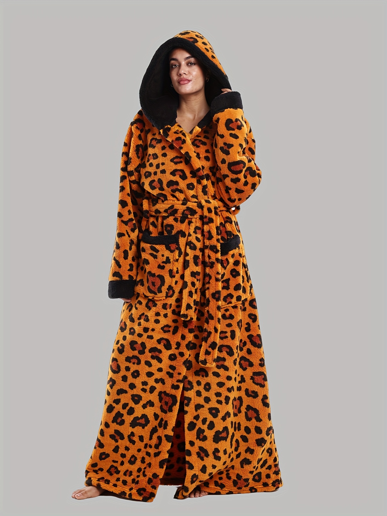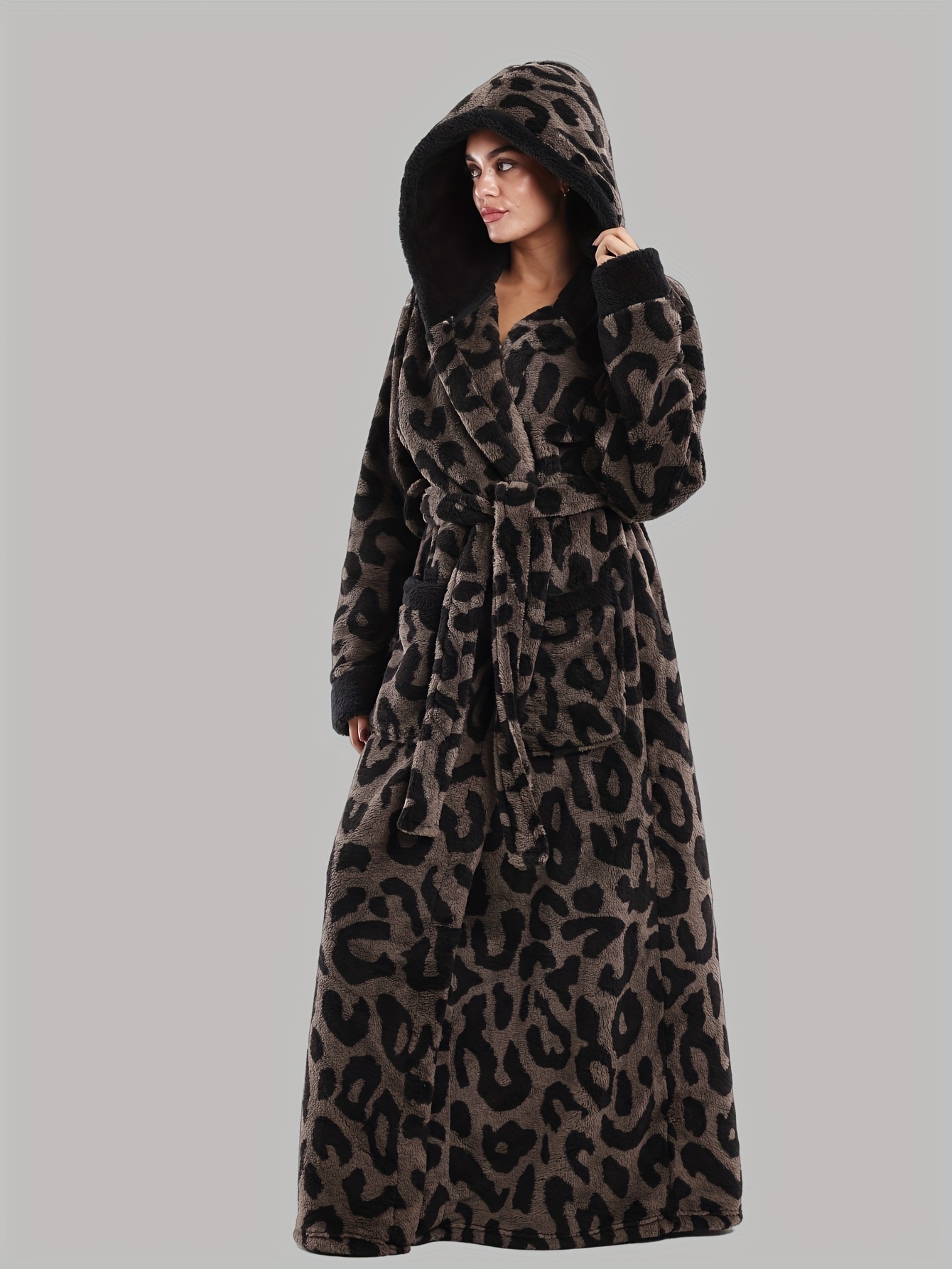Leopard Print Series - Women's Autumn and Winter - Long Sleeve Hooded Bathrobe