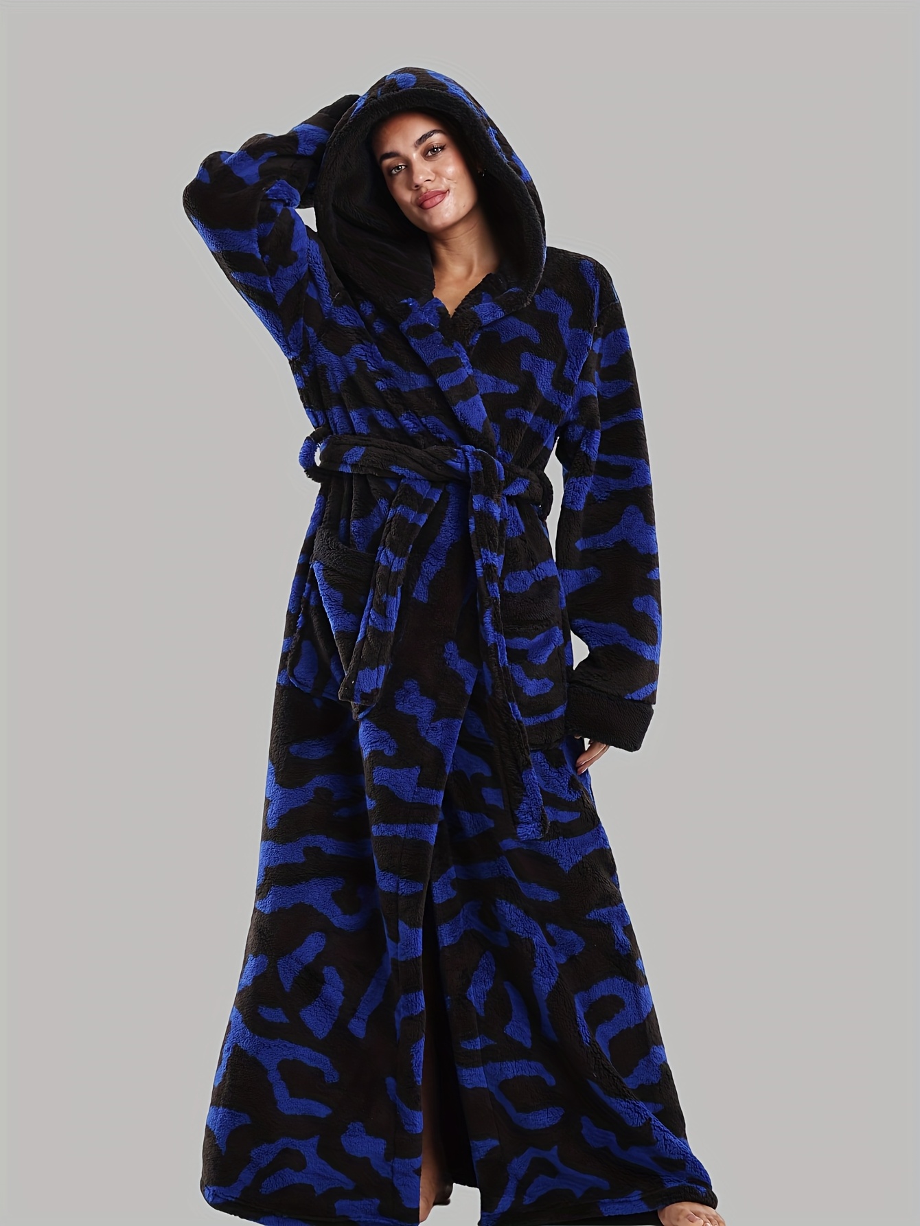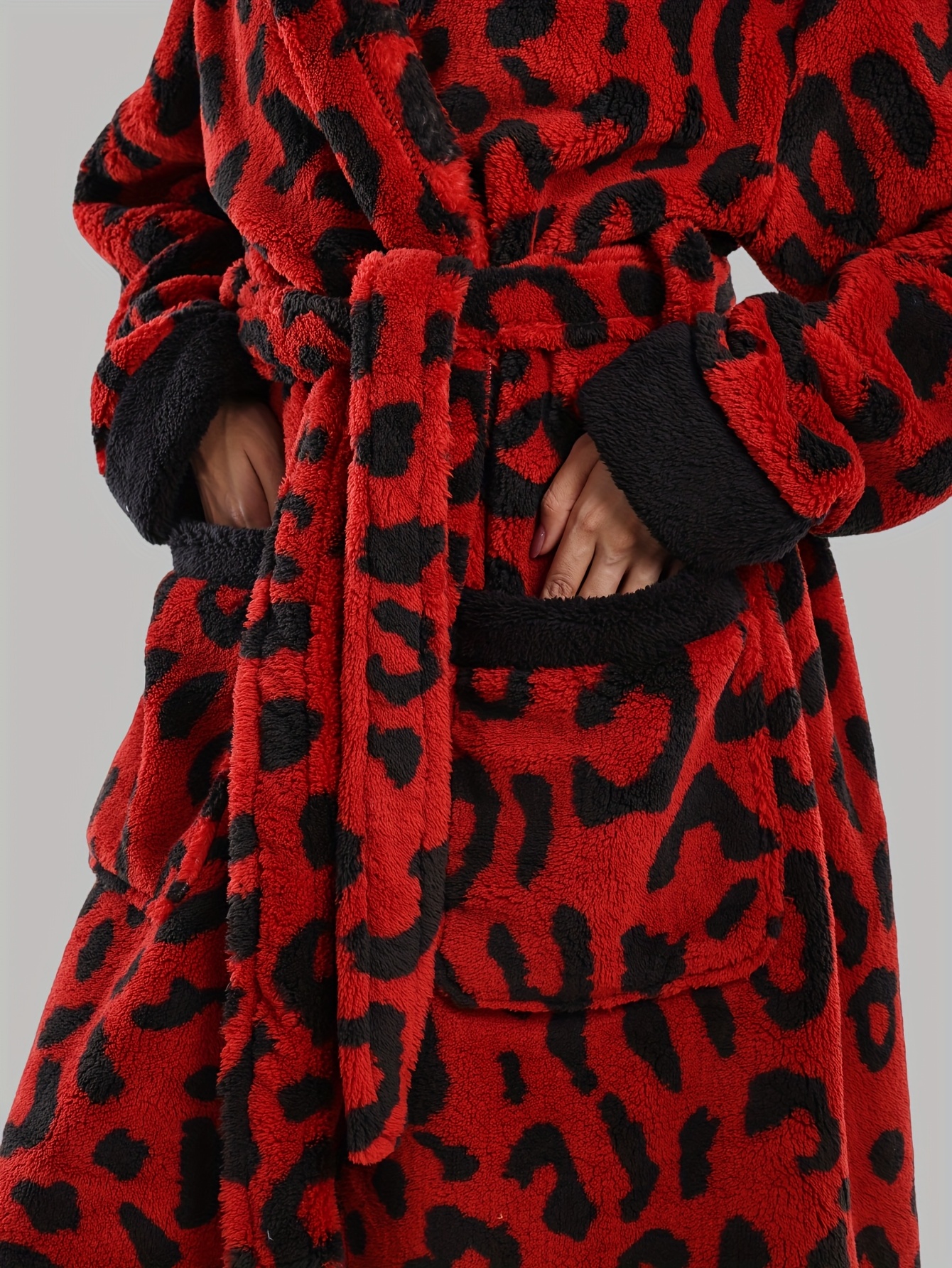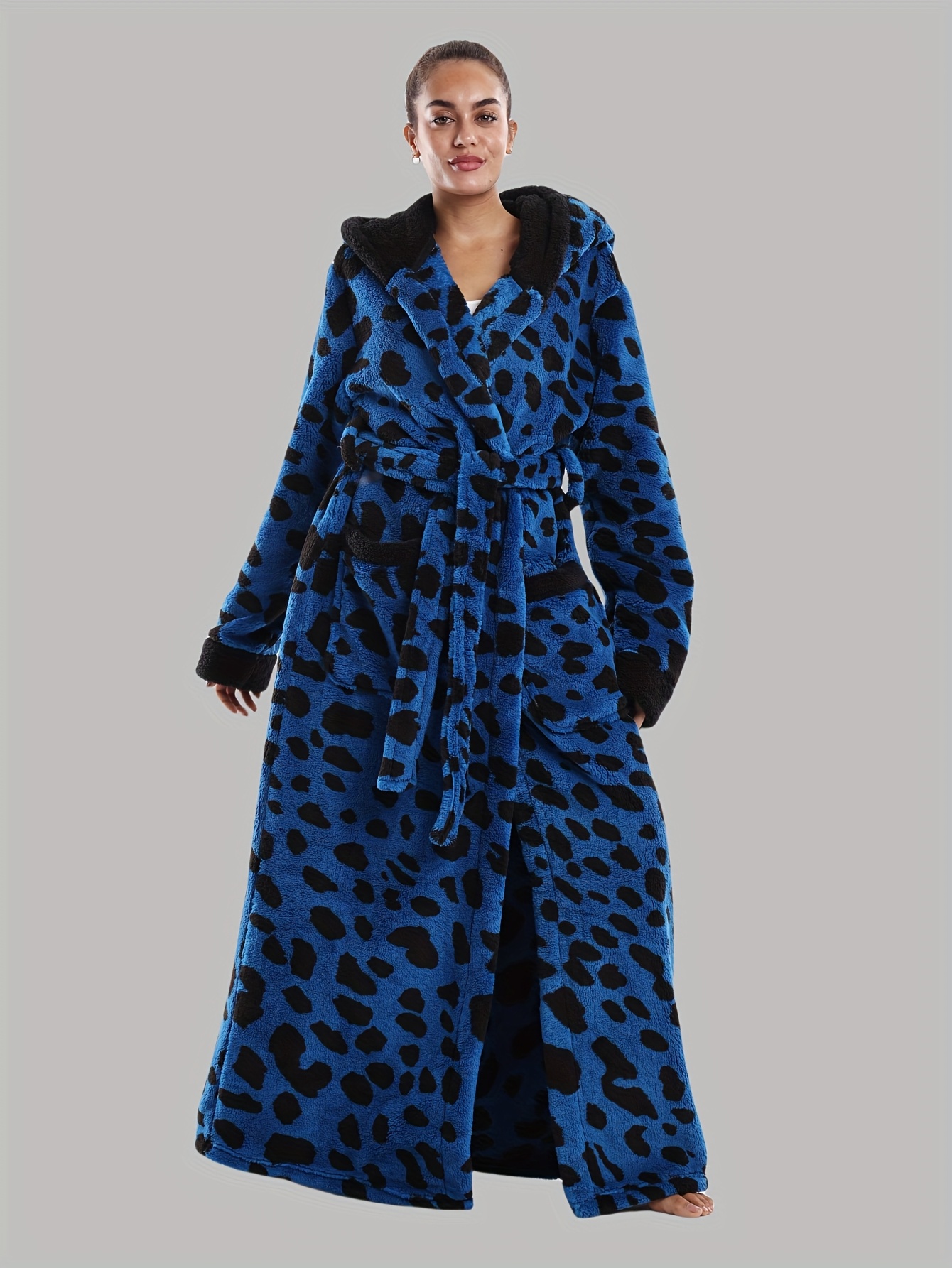 Leopard Print Series - Women's Autumn and Winter - Long Sleeve Hooded Bathrobe