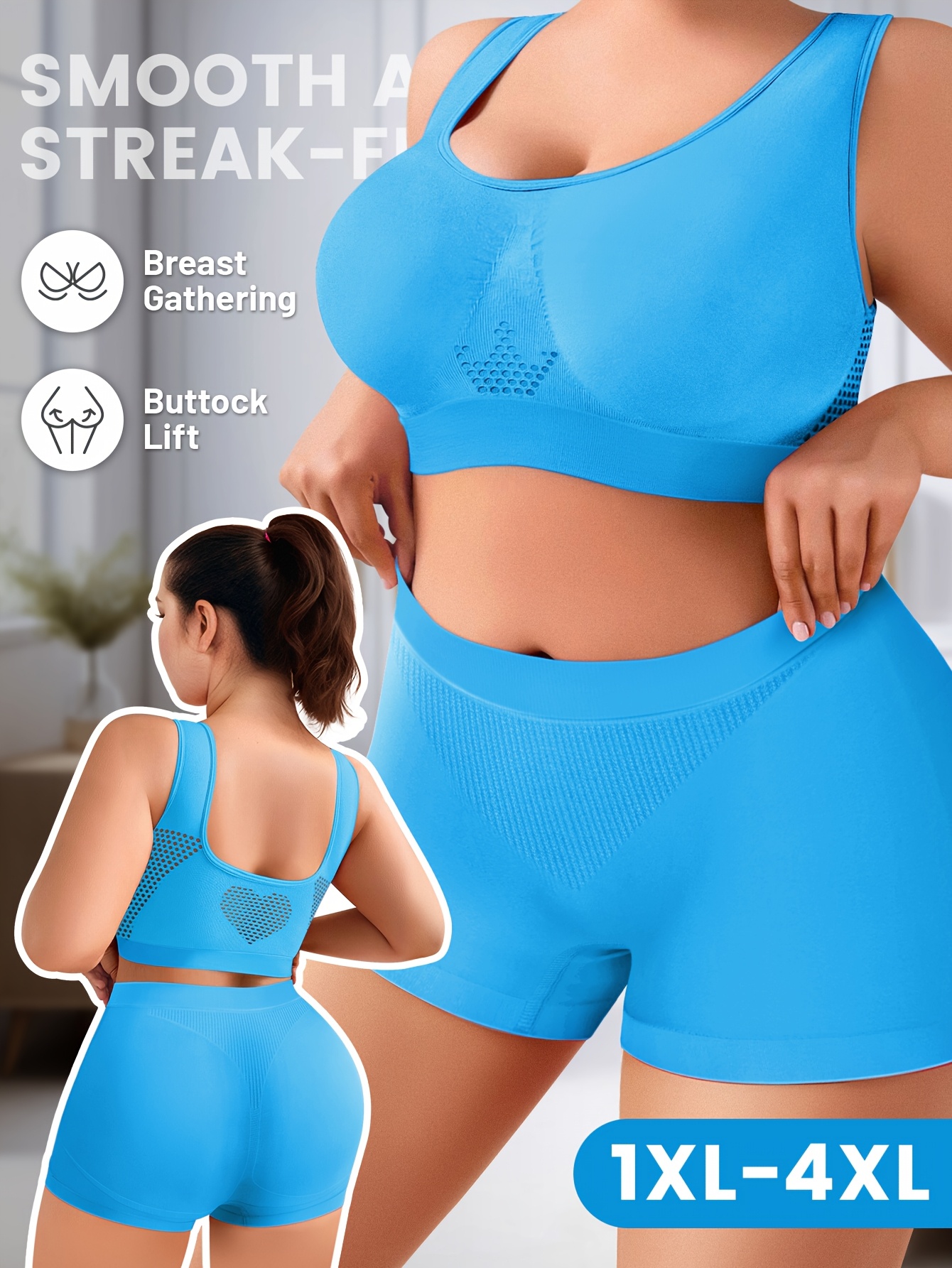 One Set Women's Plus Size Lingerie Bra and Panty Set Seamless Top Oversized Comfortable Loose Home Leisure Sports Bra