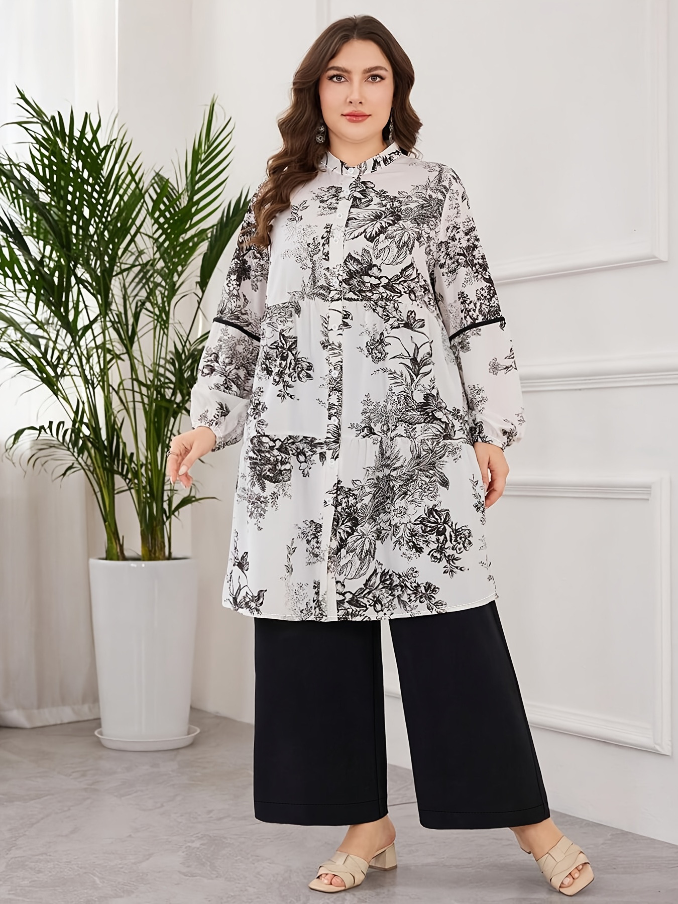 Plus Size 2pcs Set, Fashion Women's Floral Print Shirt Cardigan Top