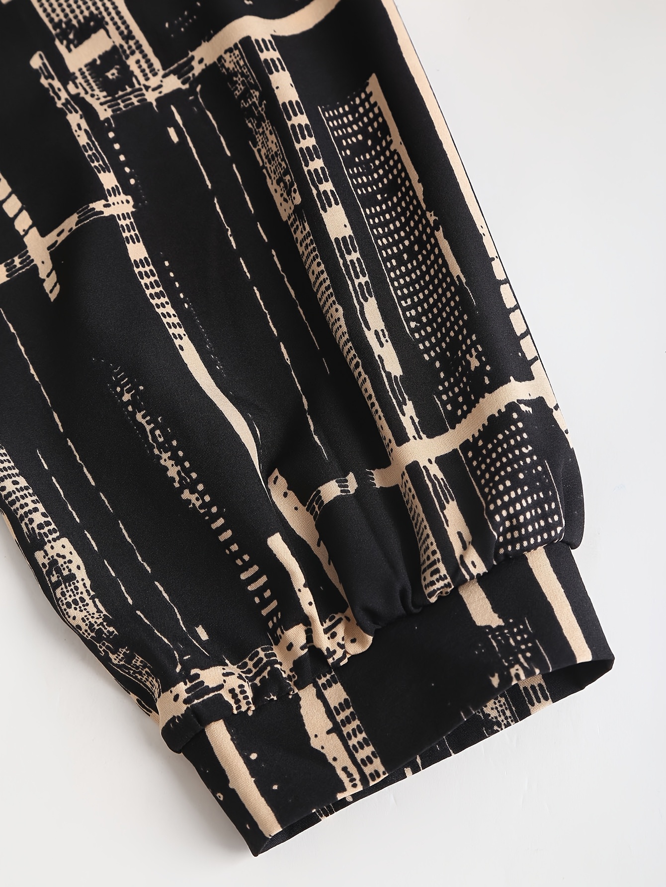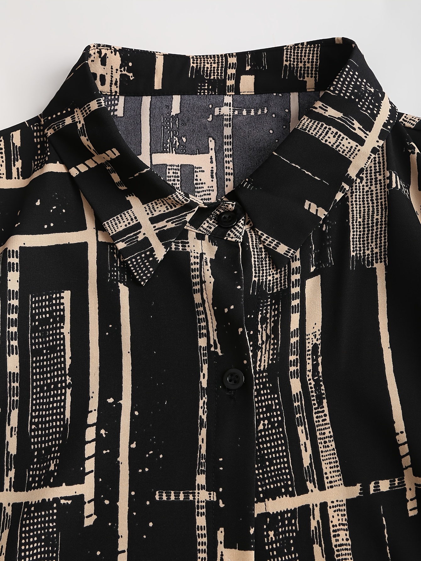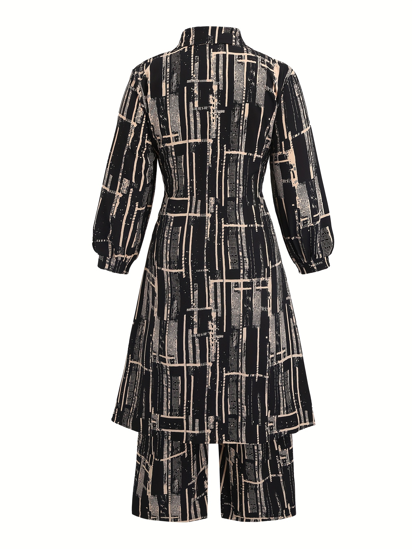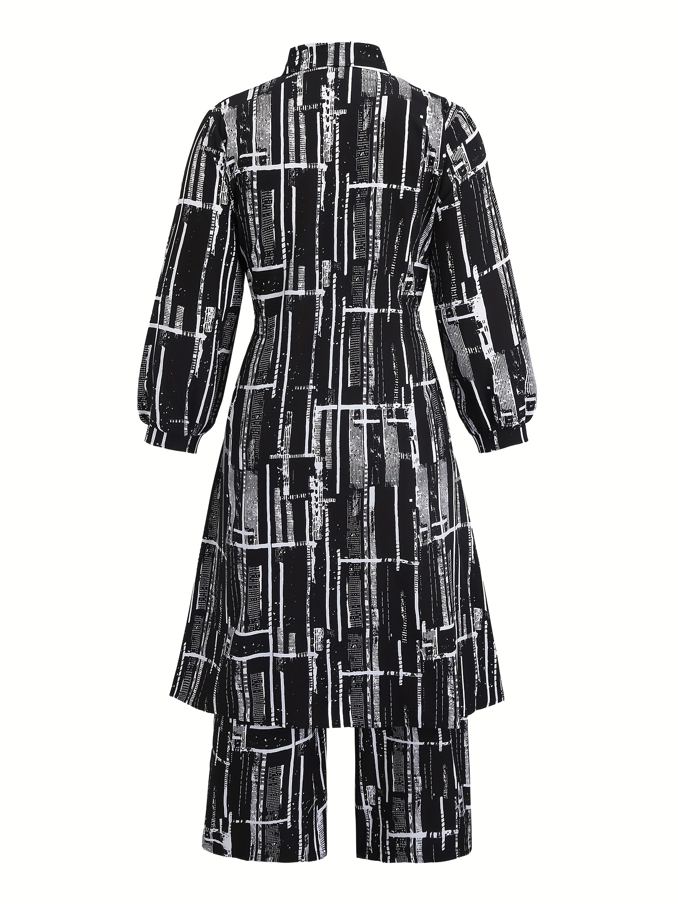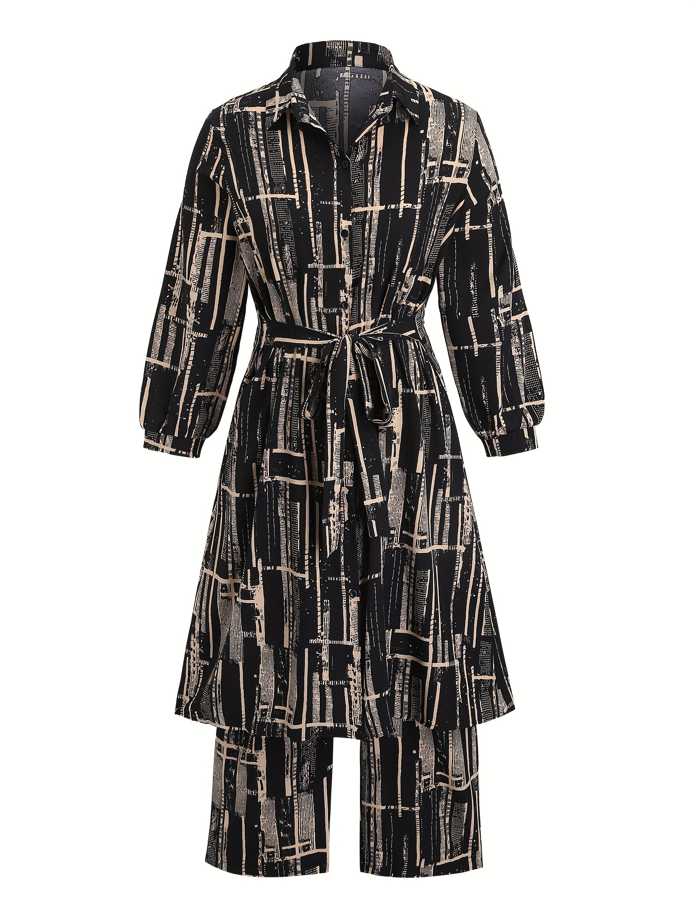 Plus Size Long Sleeve Shirt and Pants Set with Floral Print