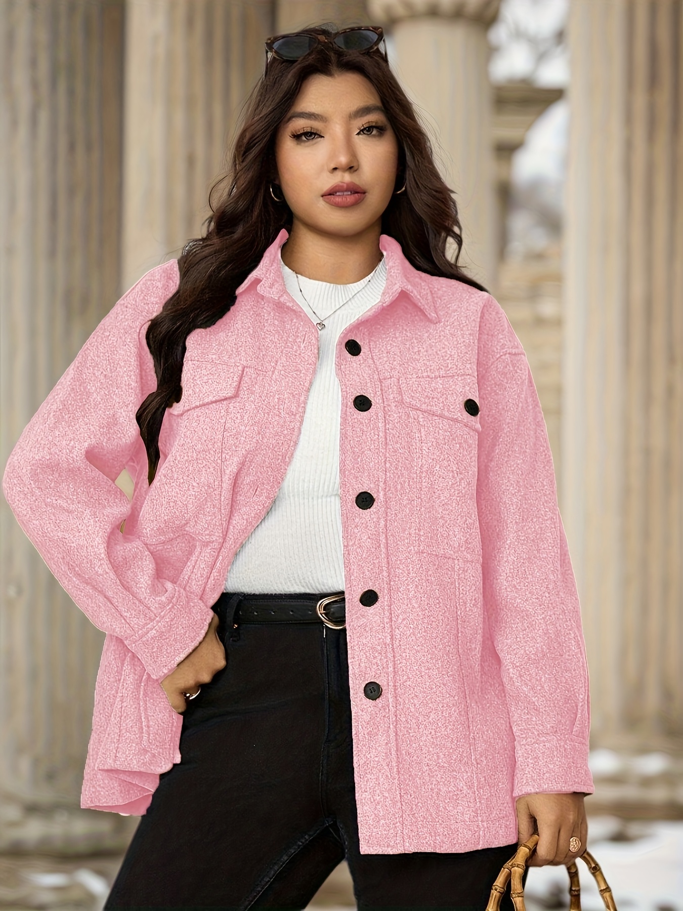 Plus Size Women's Casual Drop Shoulder Flap Pocket Shirt Mid-Weight