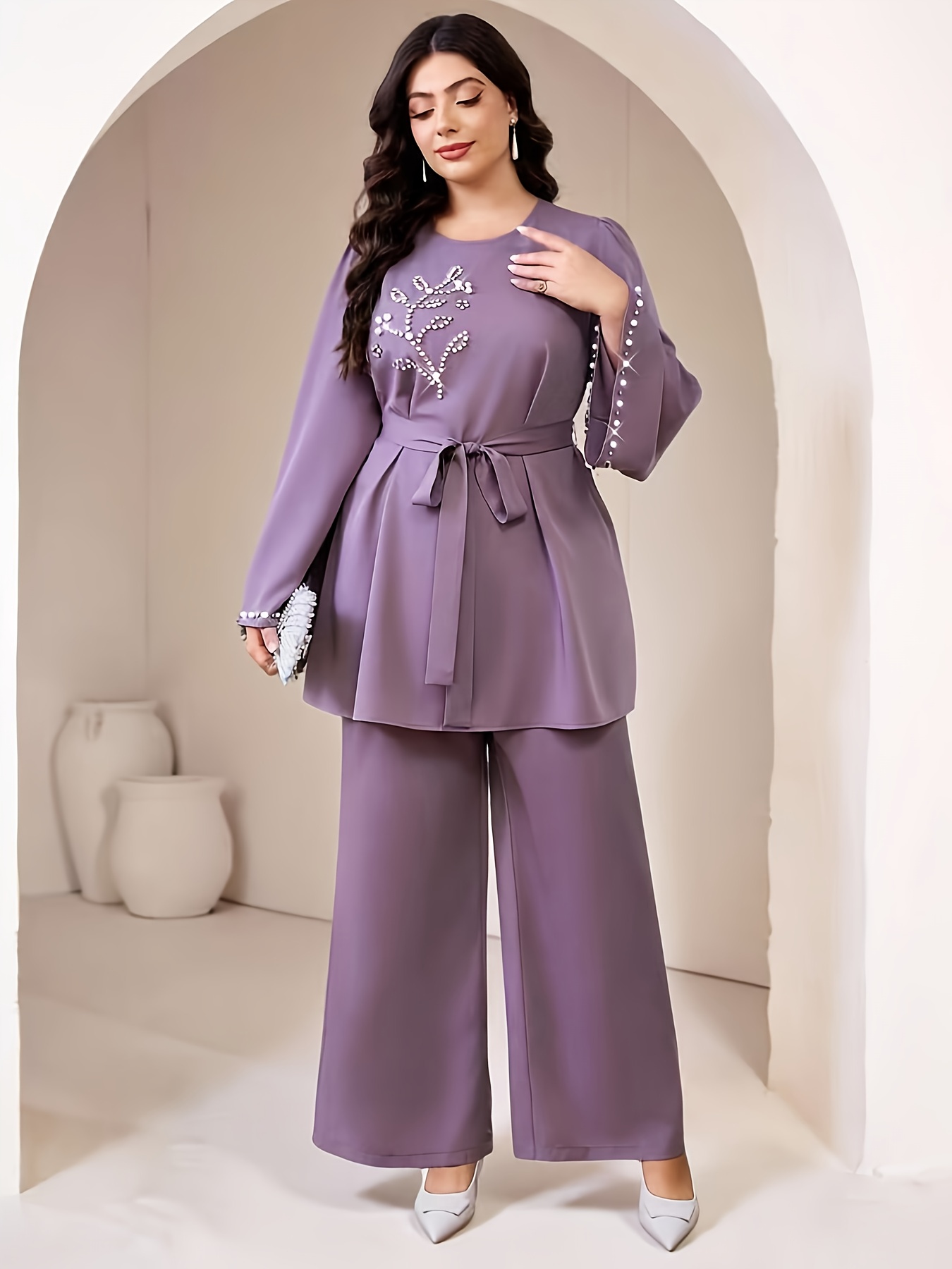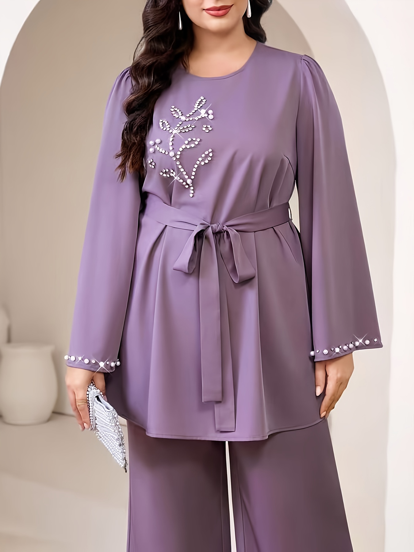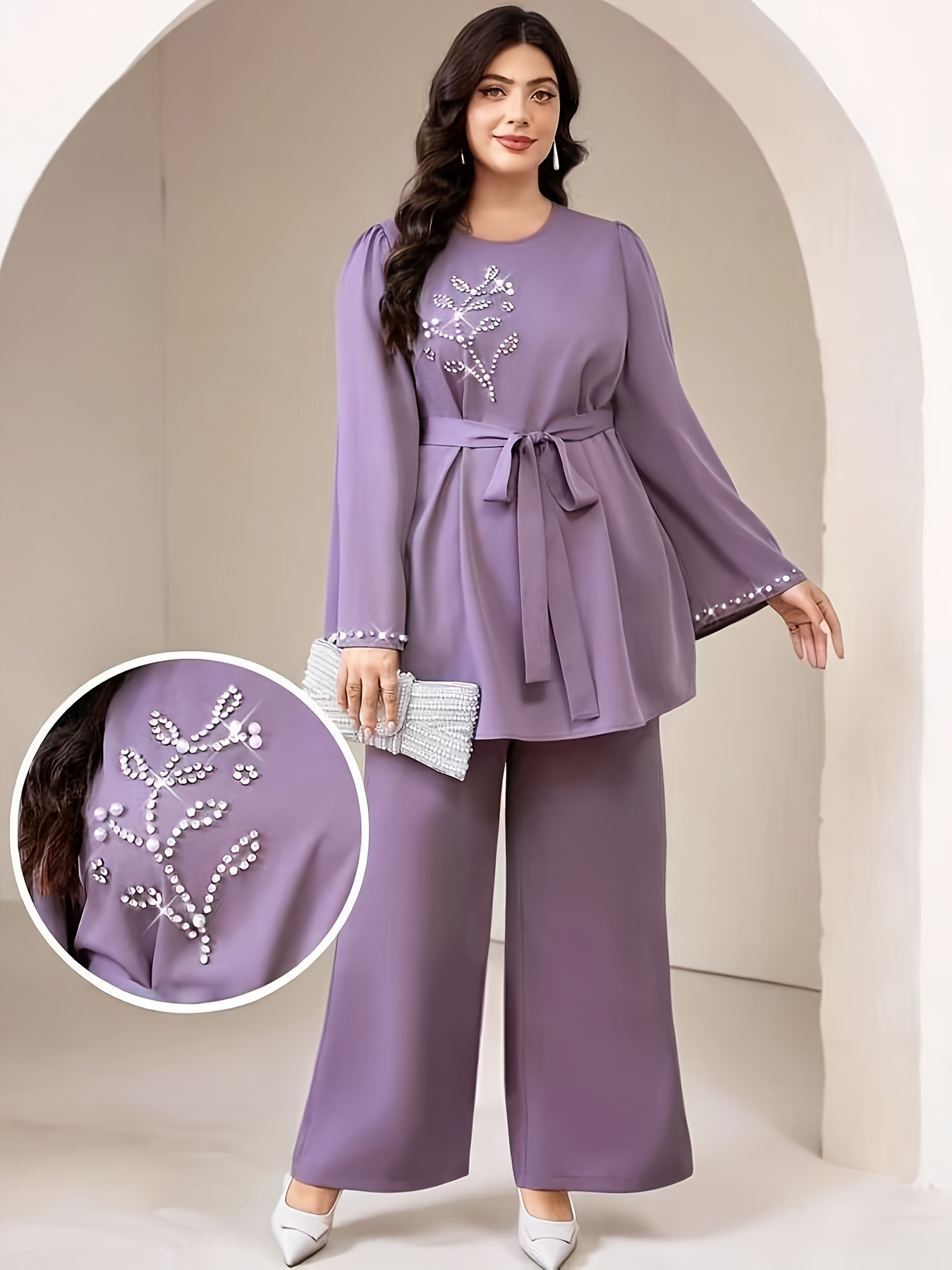 Plus-Size Women's Elegant And Dignified Pearl And Diamond Studs, Two-Piece Set