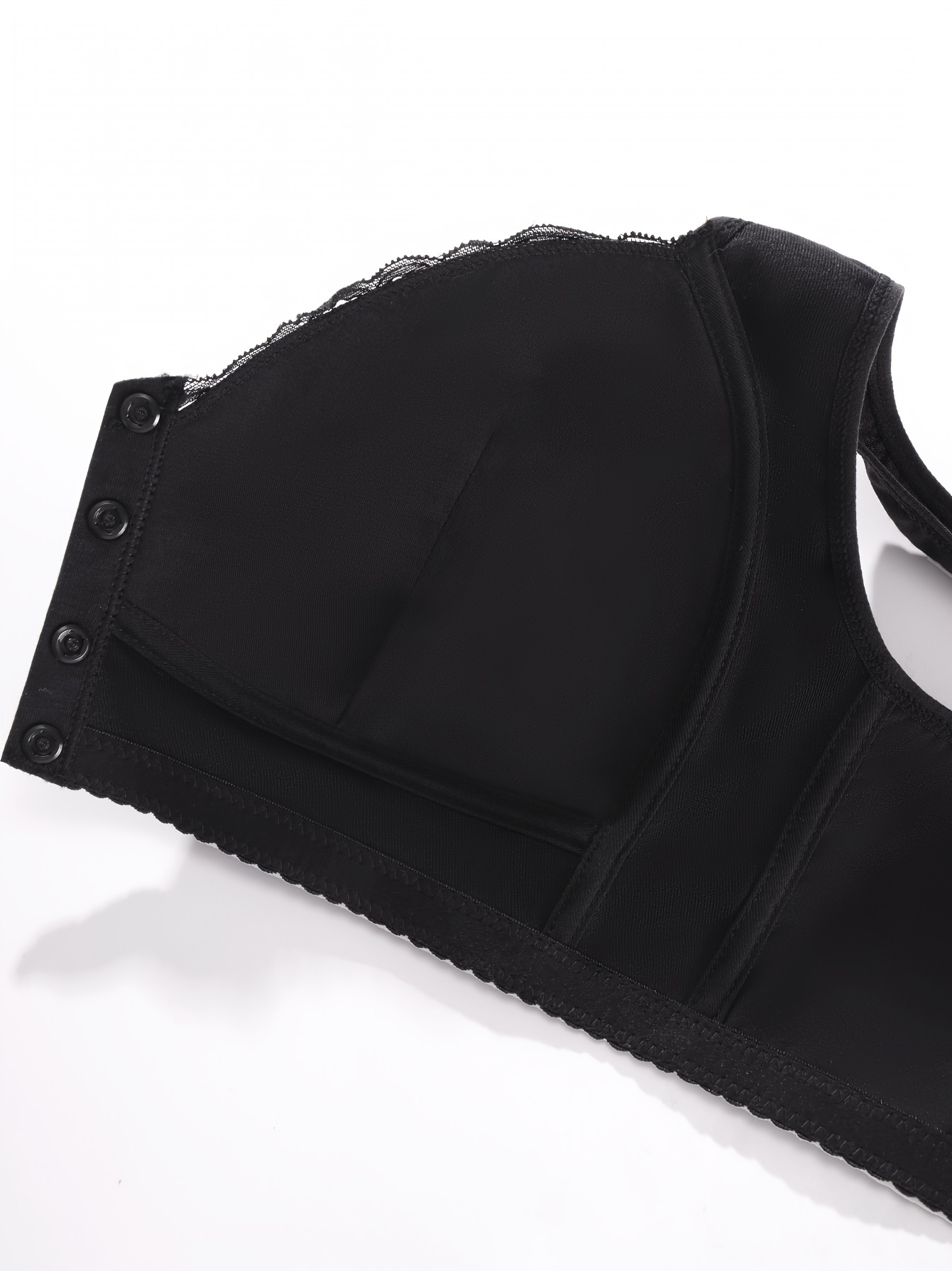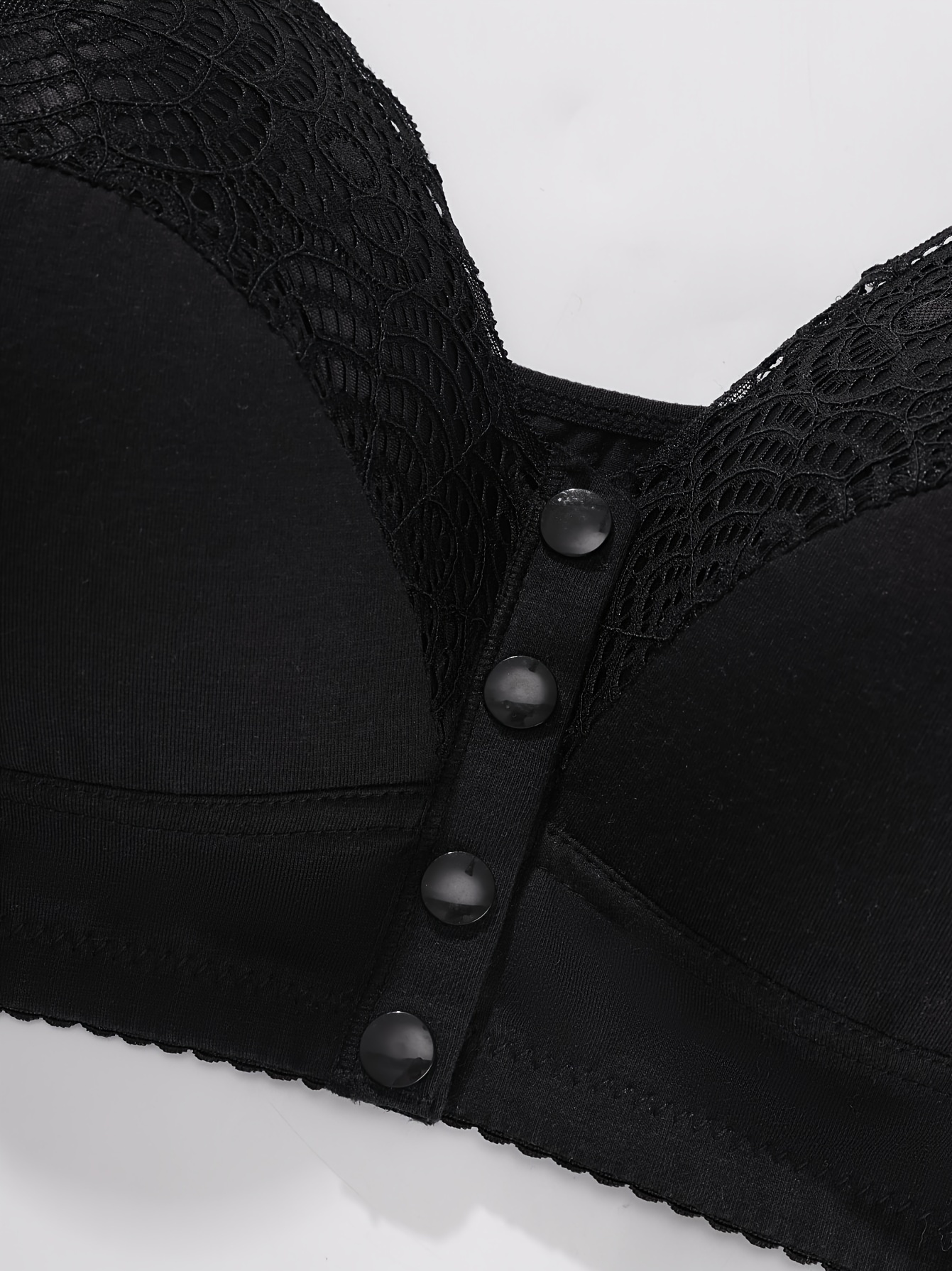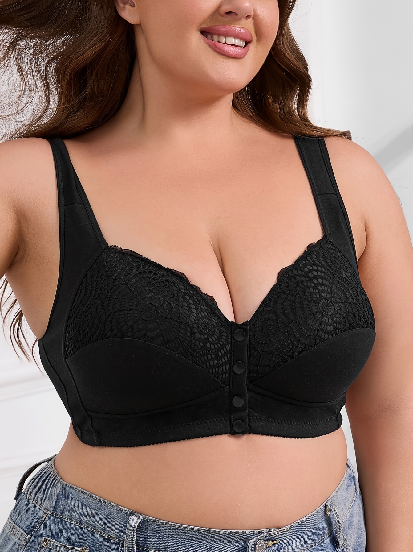 Plus Size Women's Wire-Free Bra Front Closure, Contrast Lace