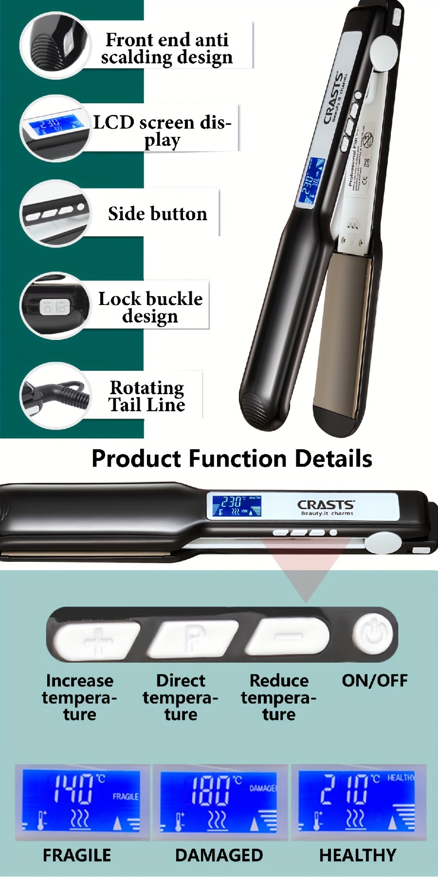 Professional Hair Straightener with Display - Dual-Use for Smooth Styling & Curls