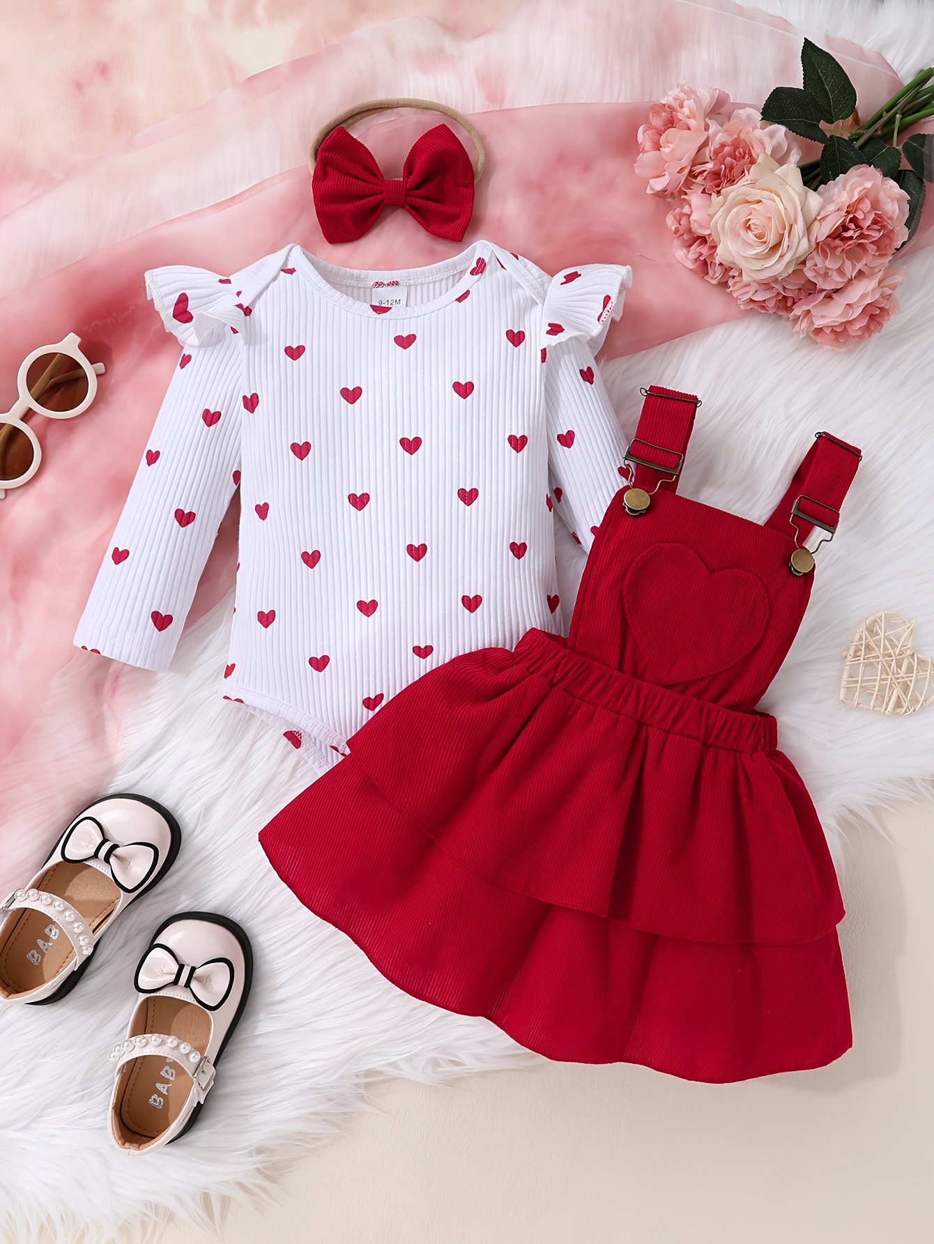 Set of 3pcs Baby Girl Heart Print Leaf Sleeve Top