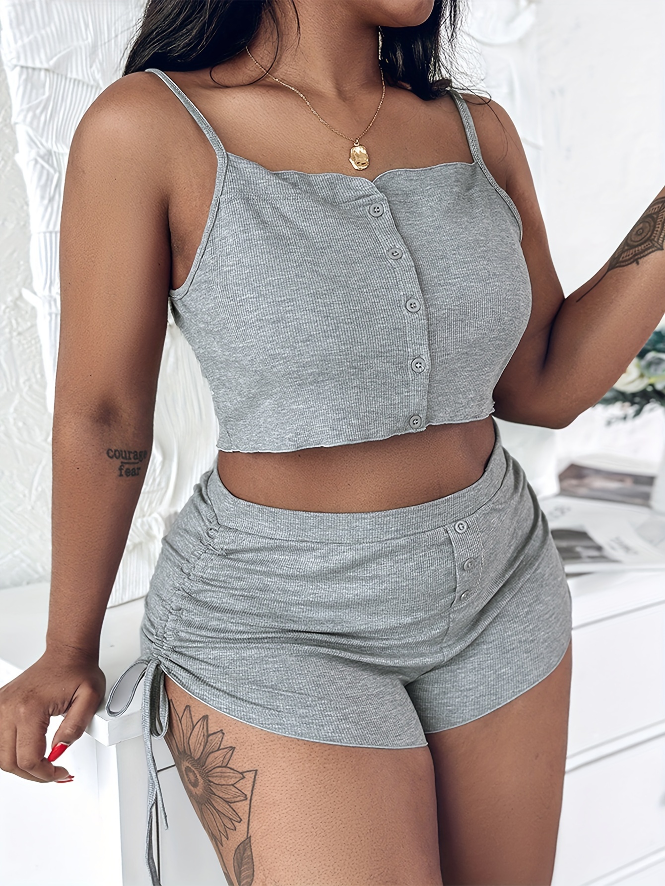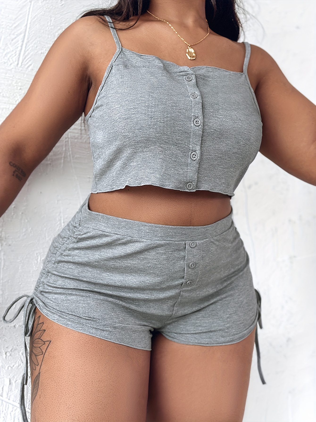 Solid Color Drawstring Pleated Home Set,