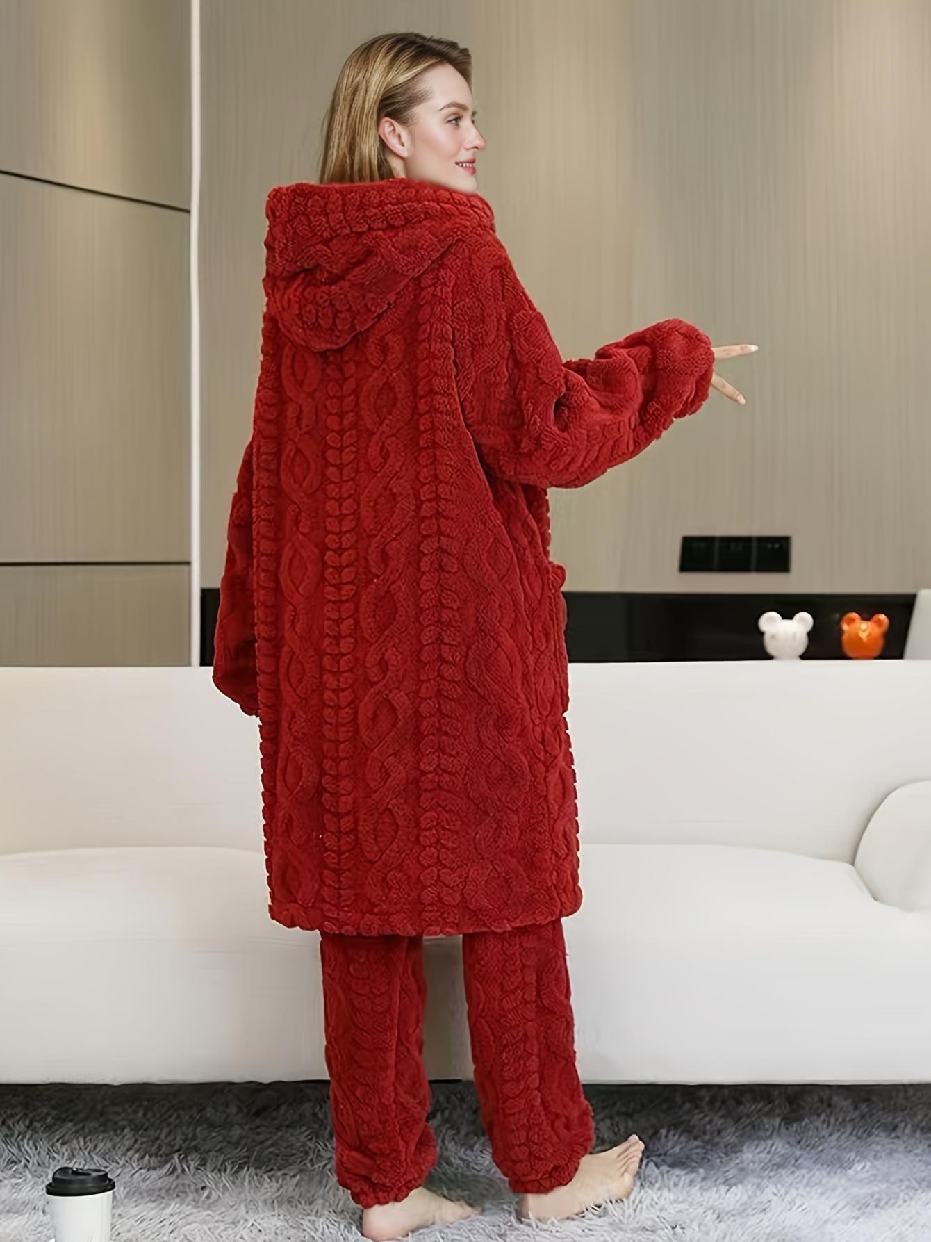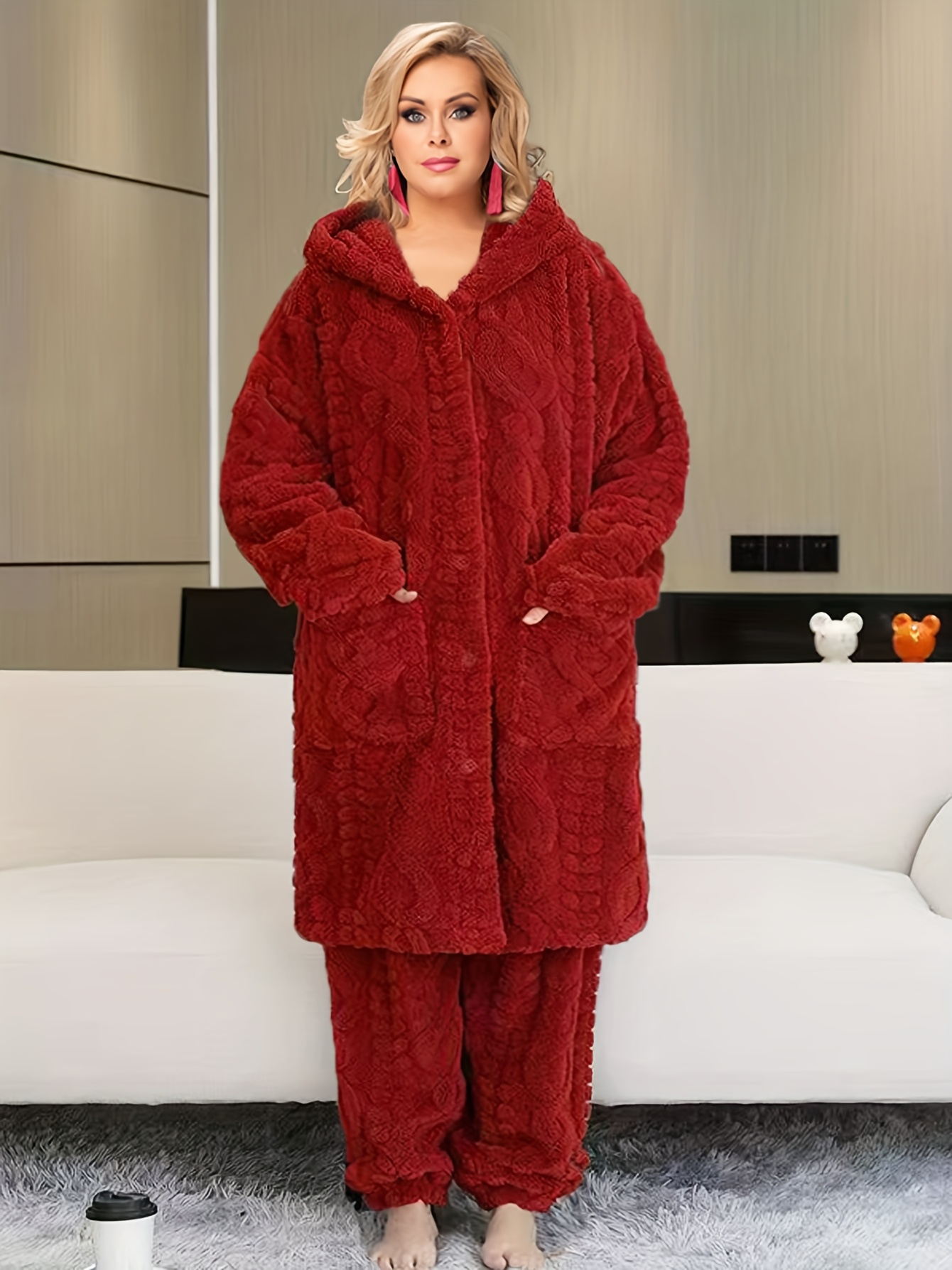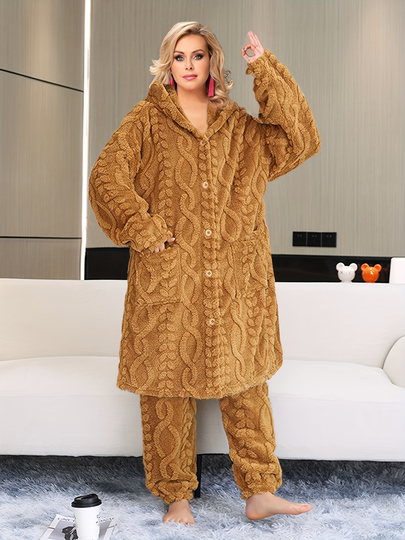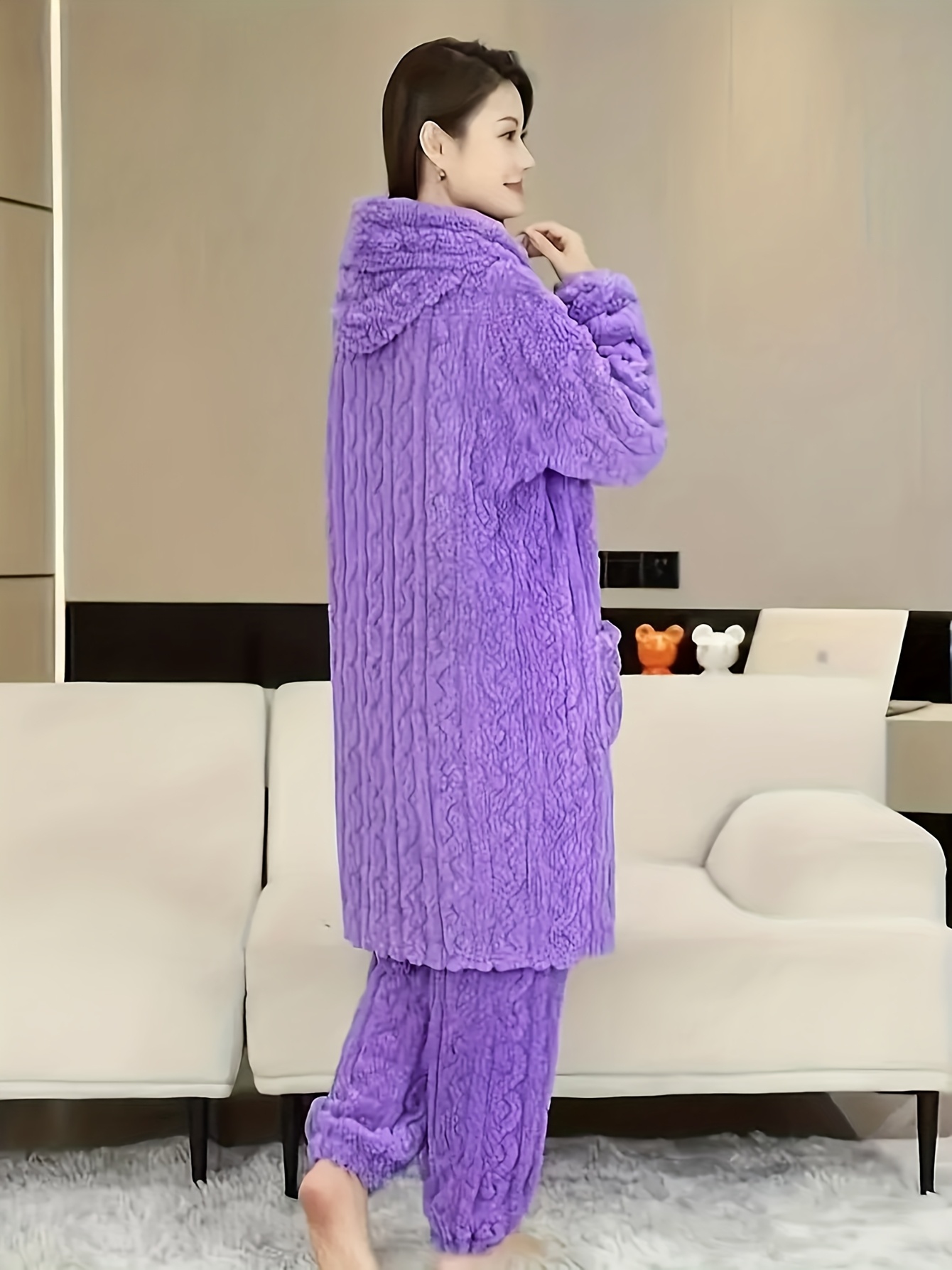 Thick Flannel Pajama Set for Women & Men - Winter Hooded Thermal Sleepwear with Front Button Placket