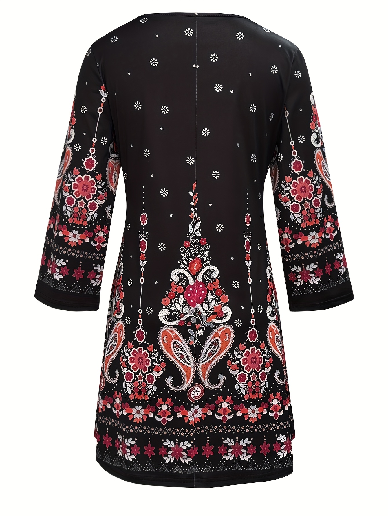 Vintage Paisley Print V-Neck Peplum Dress with Three-Quarter Sleeves