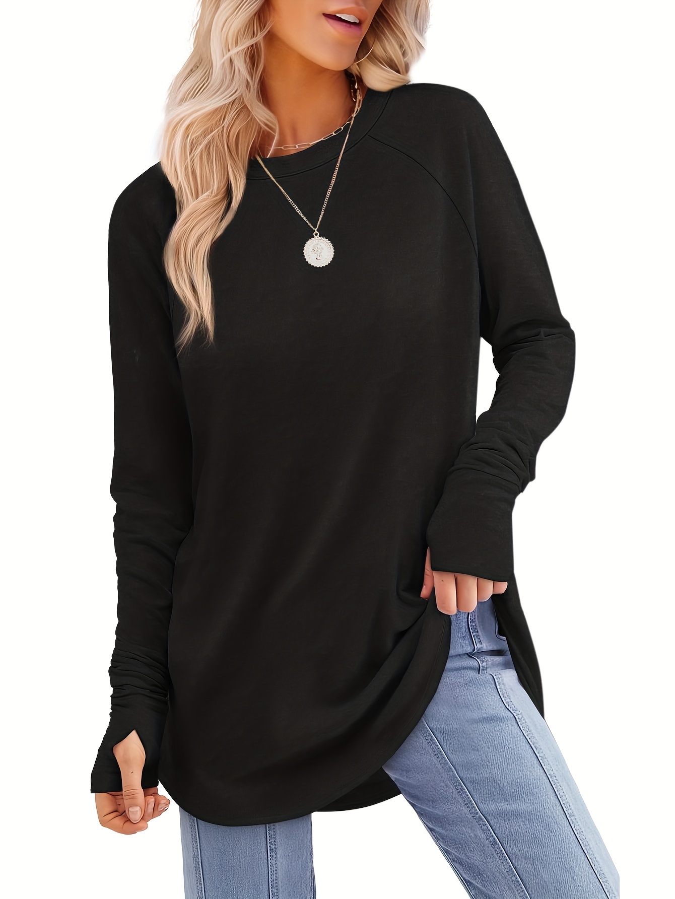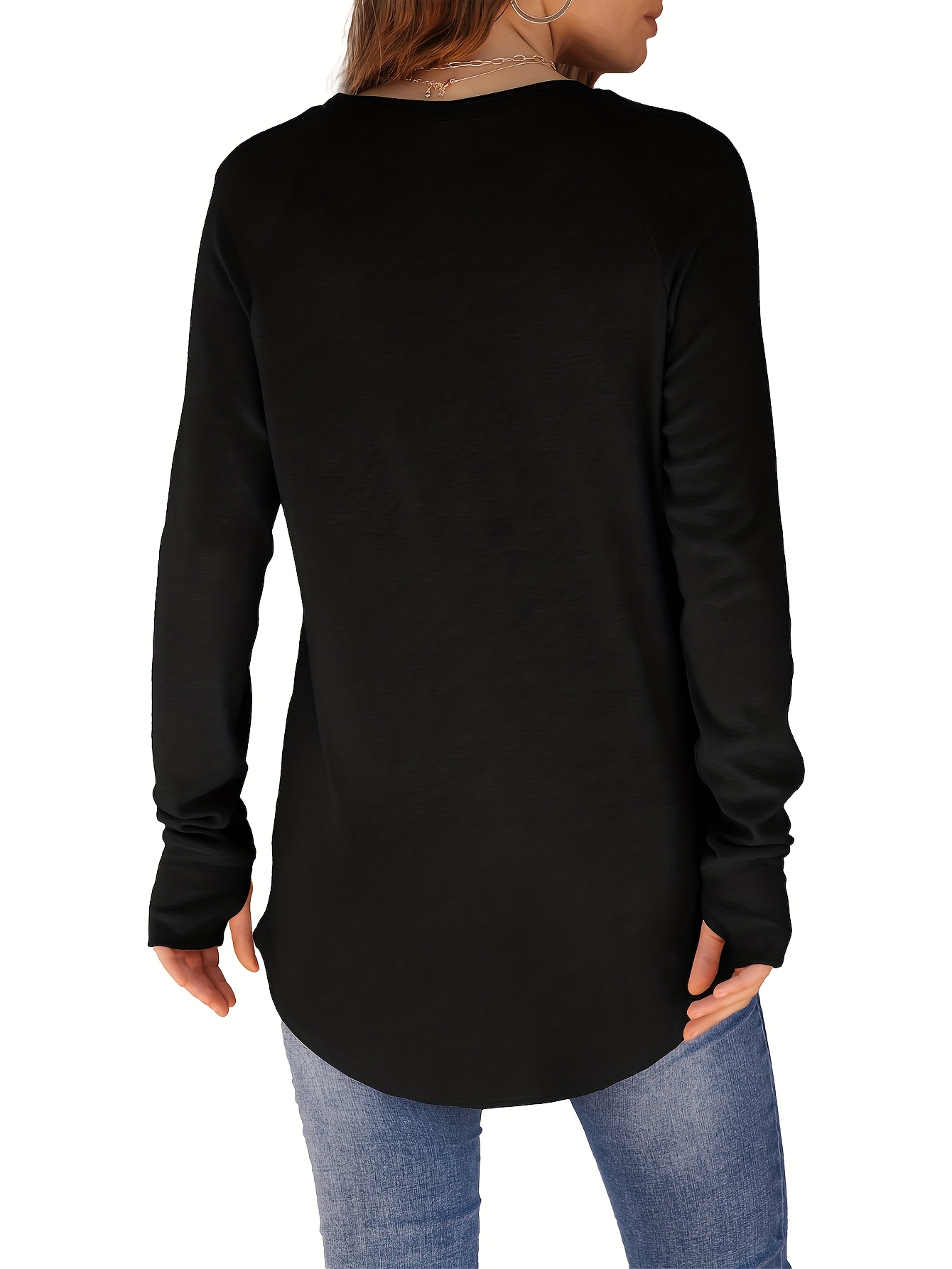 Women's Casual Long Sleeve T-Shirt with Thumb Hole - Solid Color