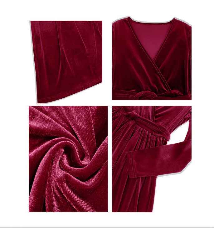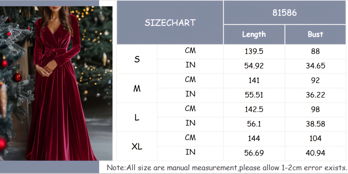 Women's Elegant Long Vintage V-Neck Dress with Belted Bow Christmas Day and all Party