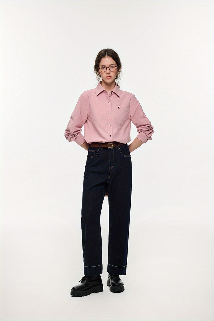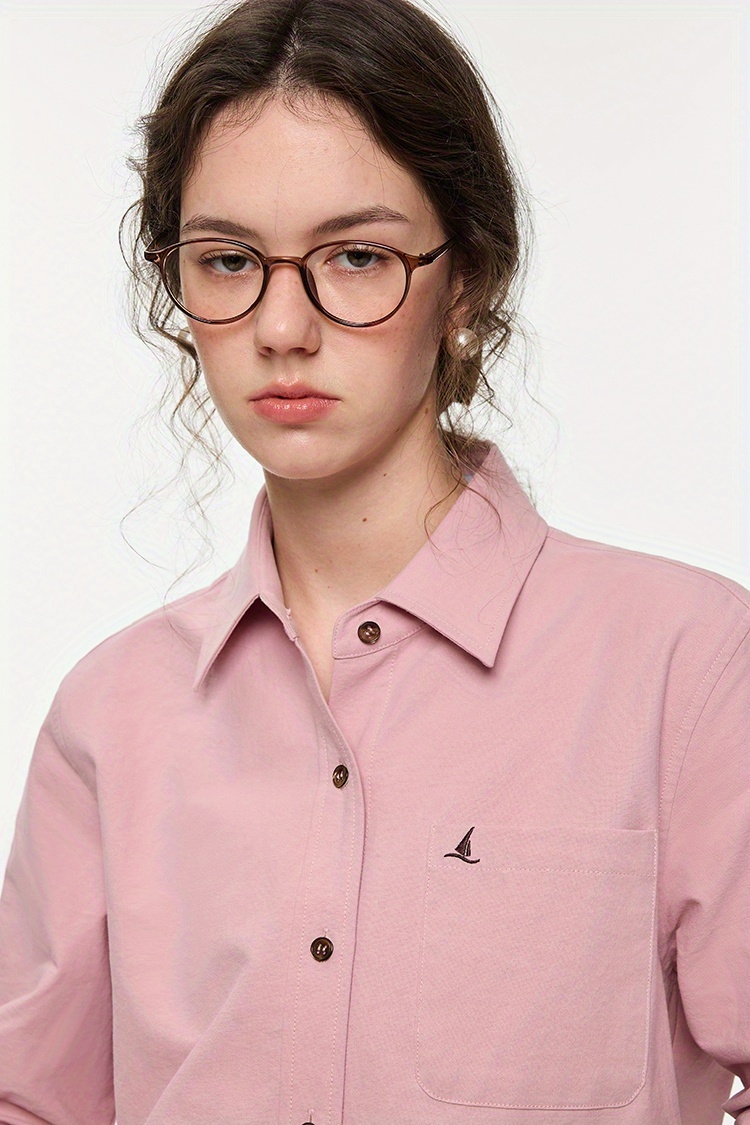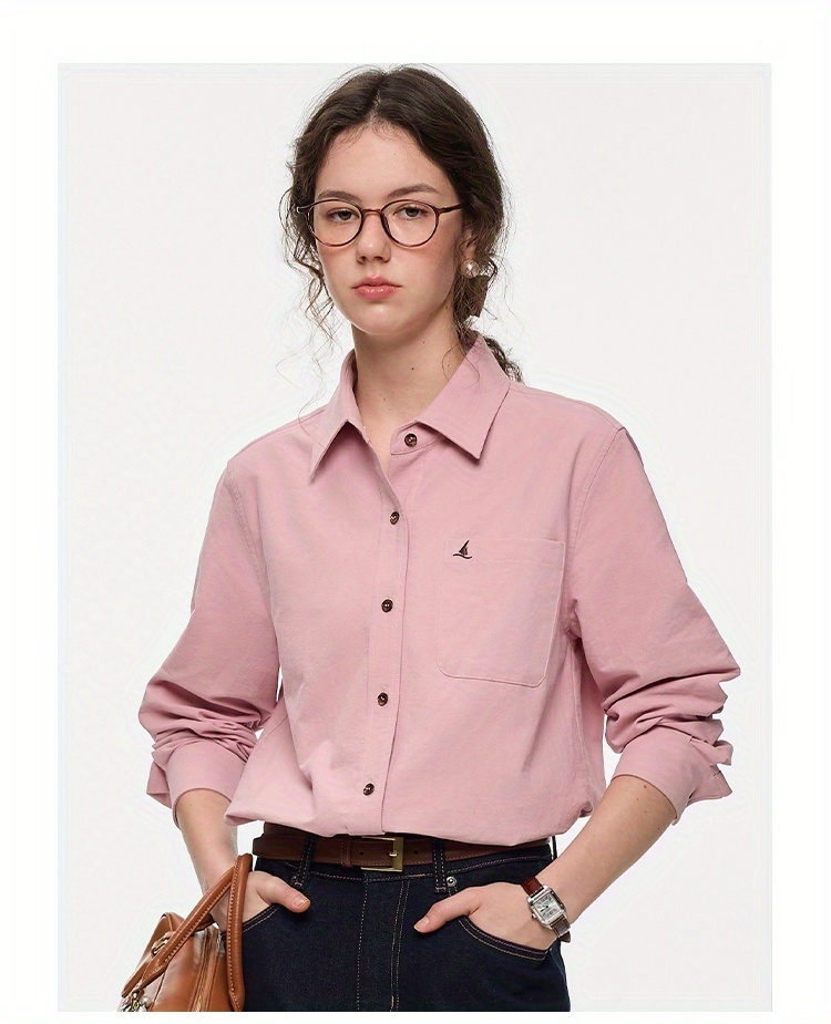 Women's Elegant Minimalist Blouse - Long Sleeve Button-Front Shirt with Classic Collar