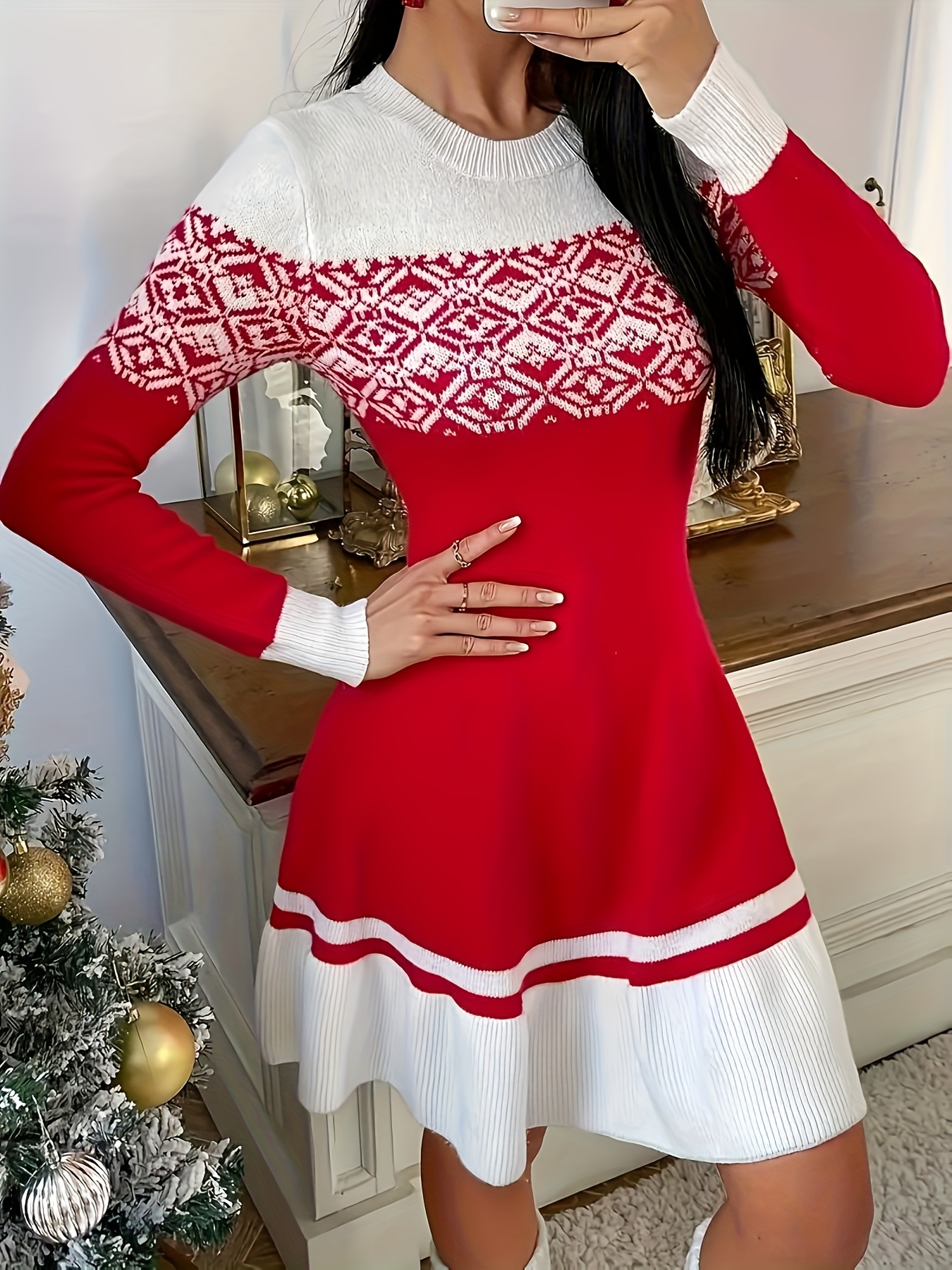 Women's Elegant Sweater Dress - Long Sleeve Winter Party Christmas Day