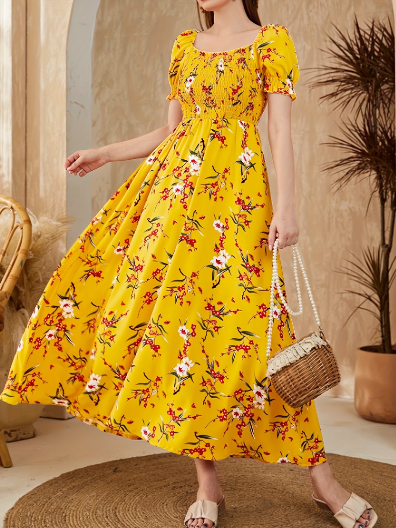 Women's Floral Print Square Neck Puff Sleeve Dress