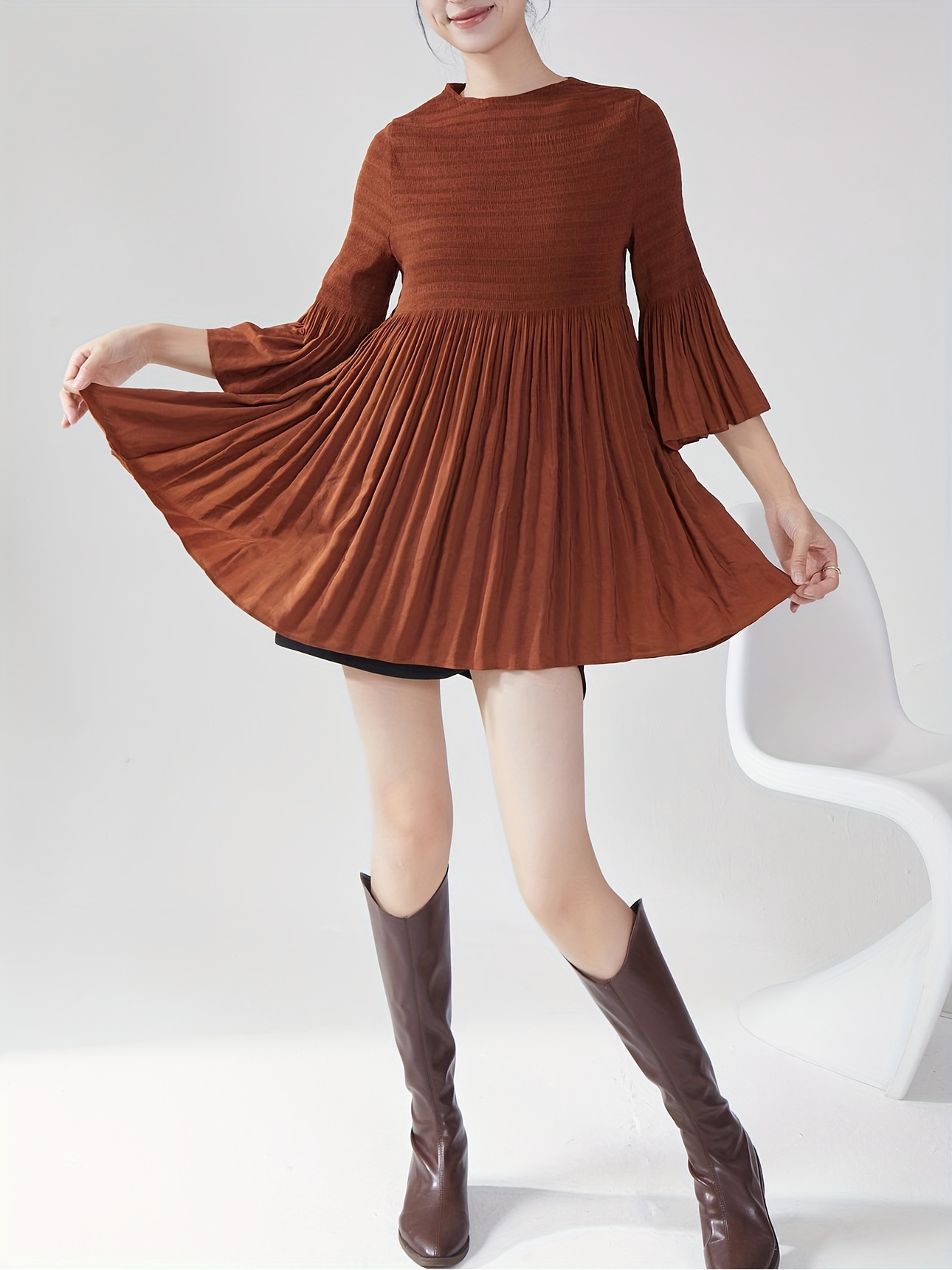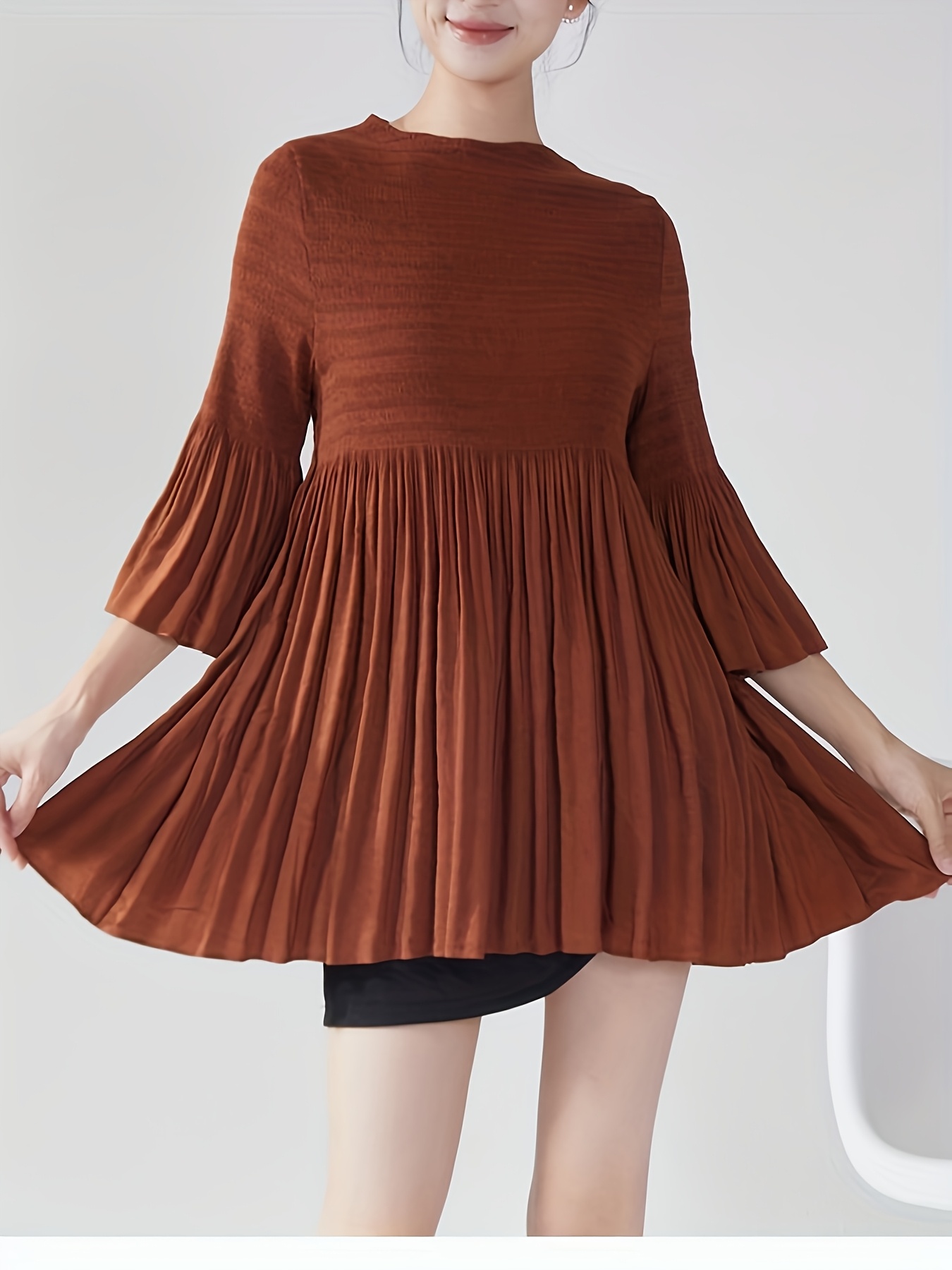 Women's French Style Smoothing A-Line T-Shirt with Bell Sleeve Top