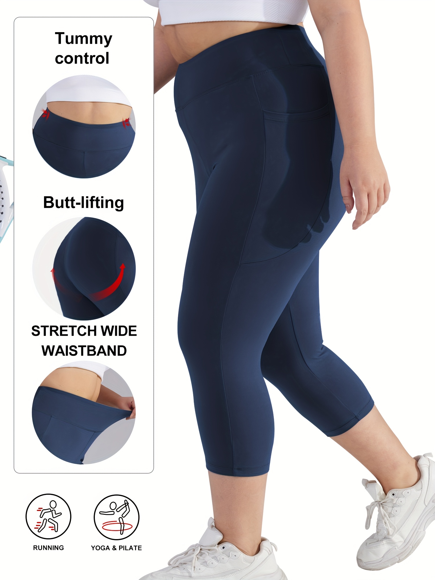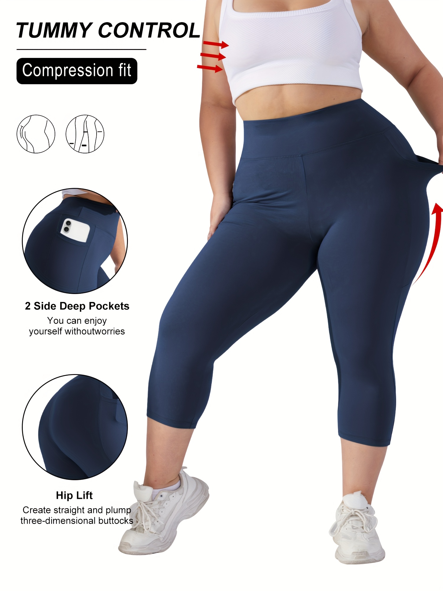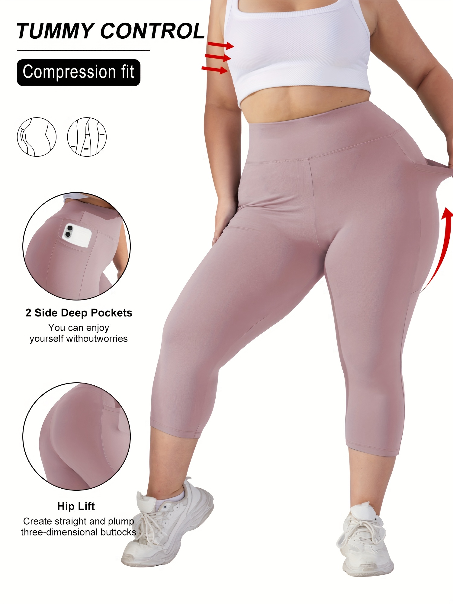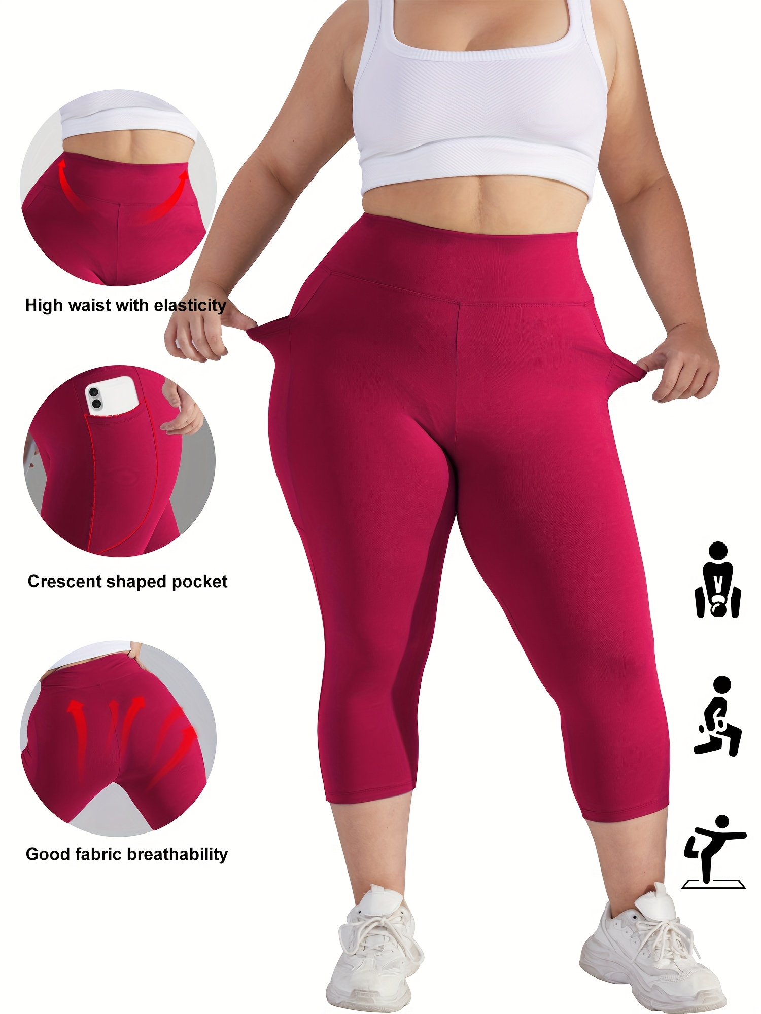 Women's High-Waist Crescent Moon Pocket Capri Leggings