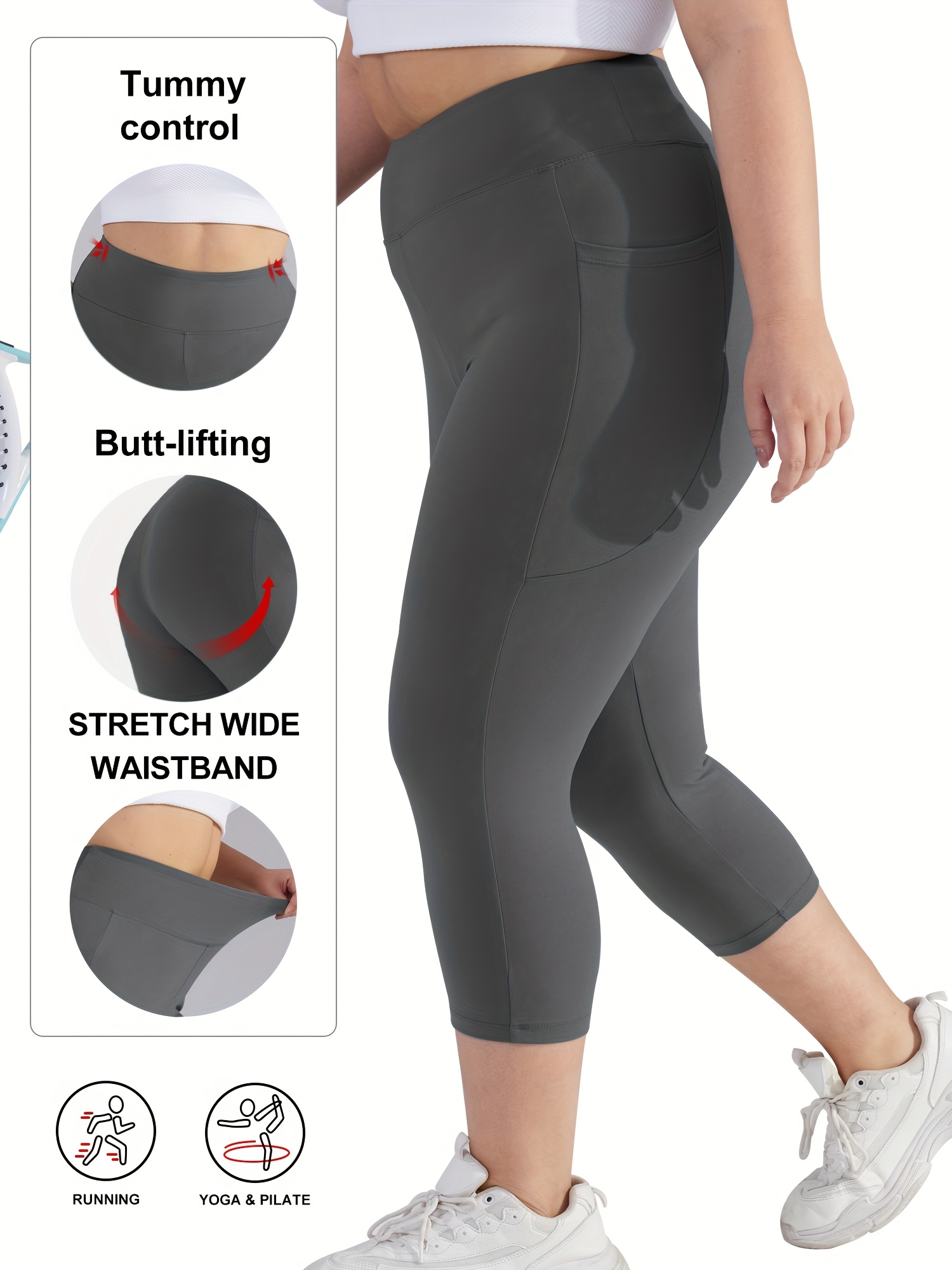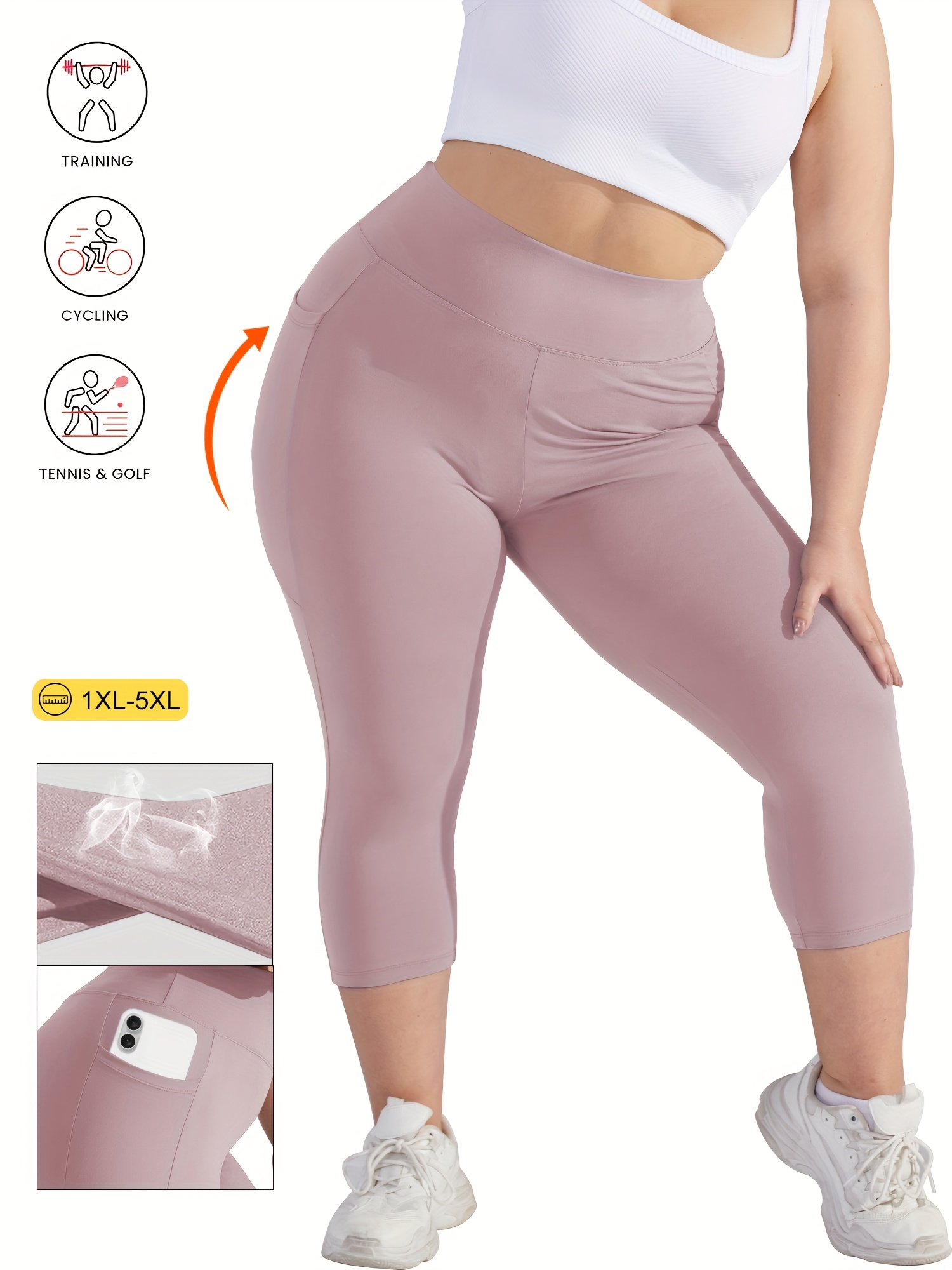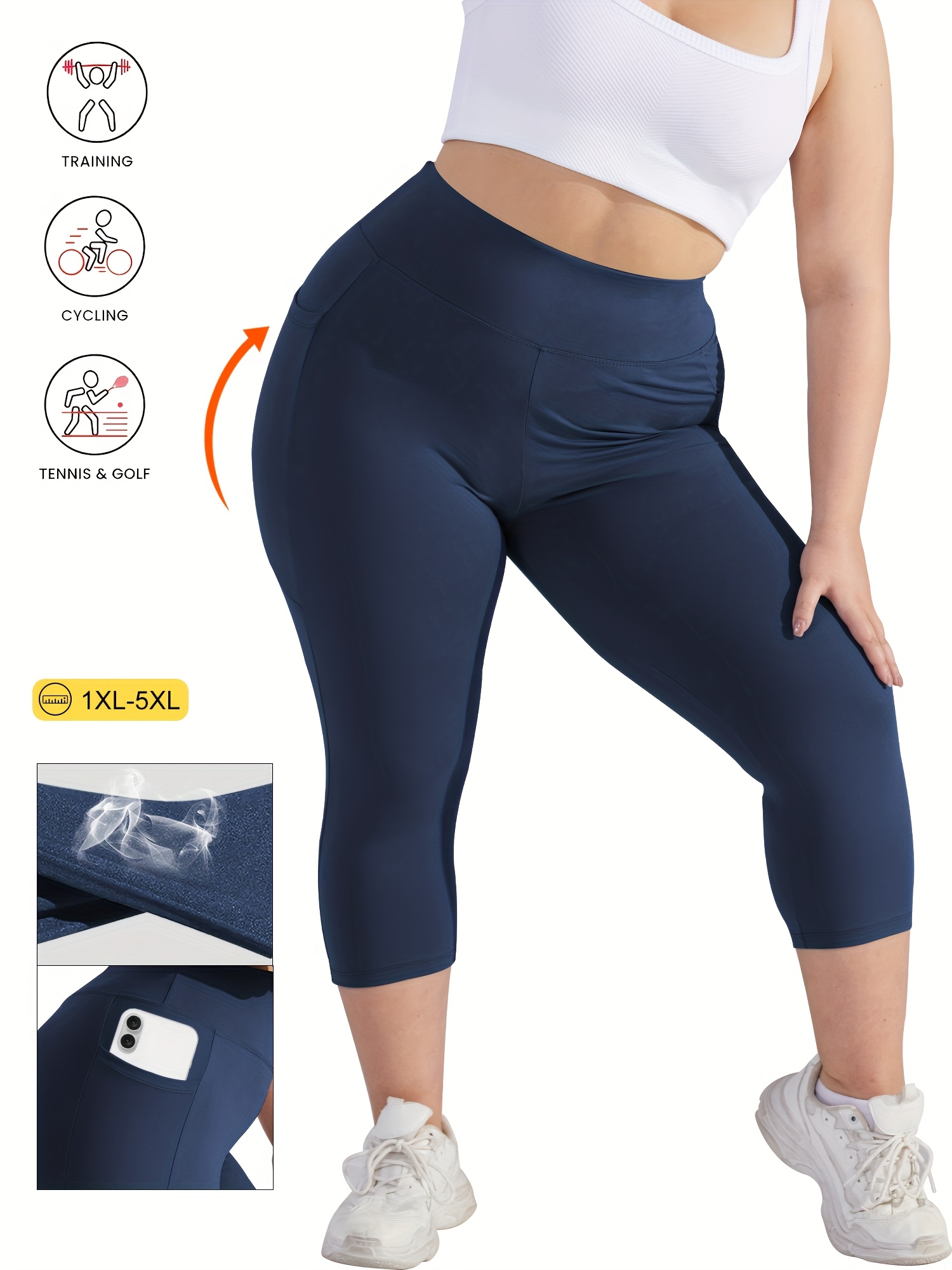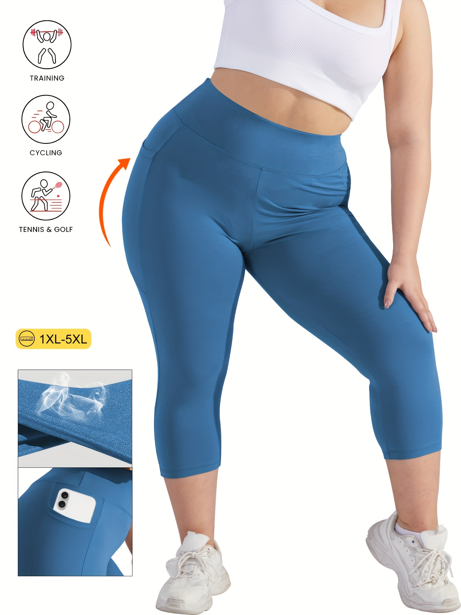 Women's High-Waist Crescent Moon Pocket Capri Leggings