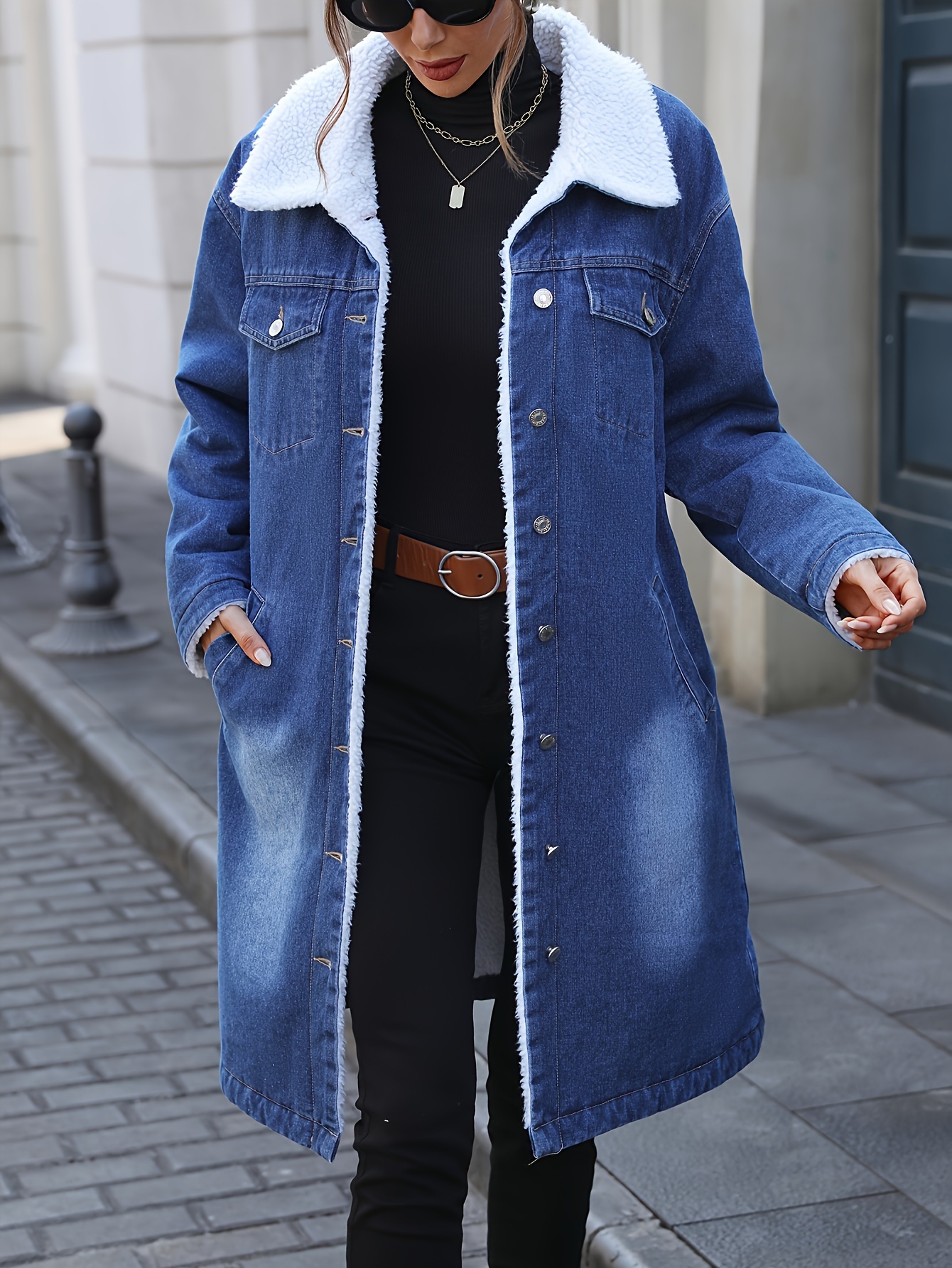 Women's Mid-Length -Lined Padded Coat, Loose Fit Fashionable Winter Outerwear