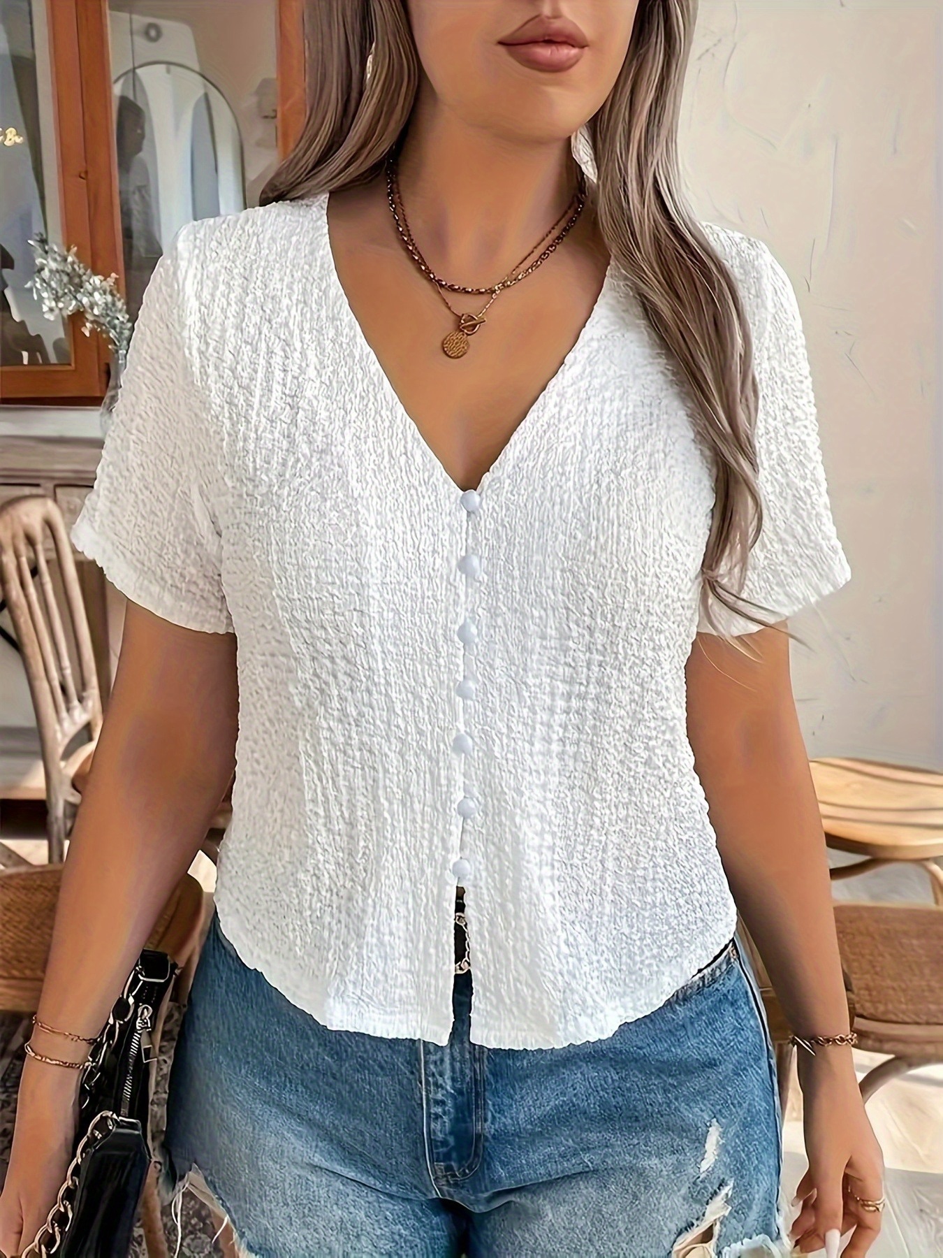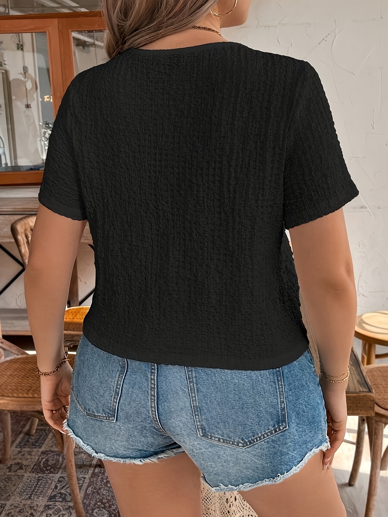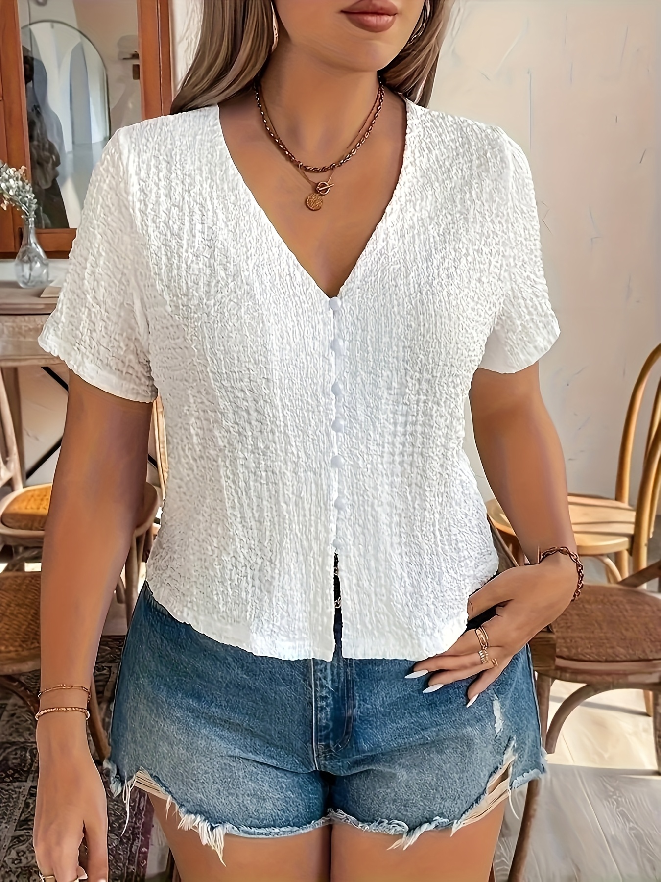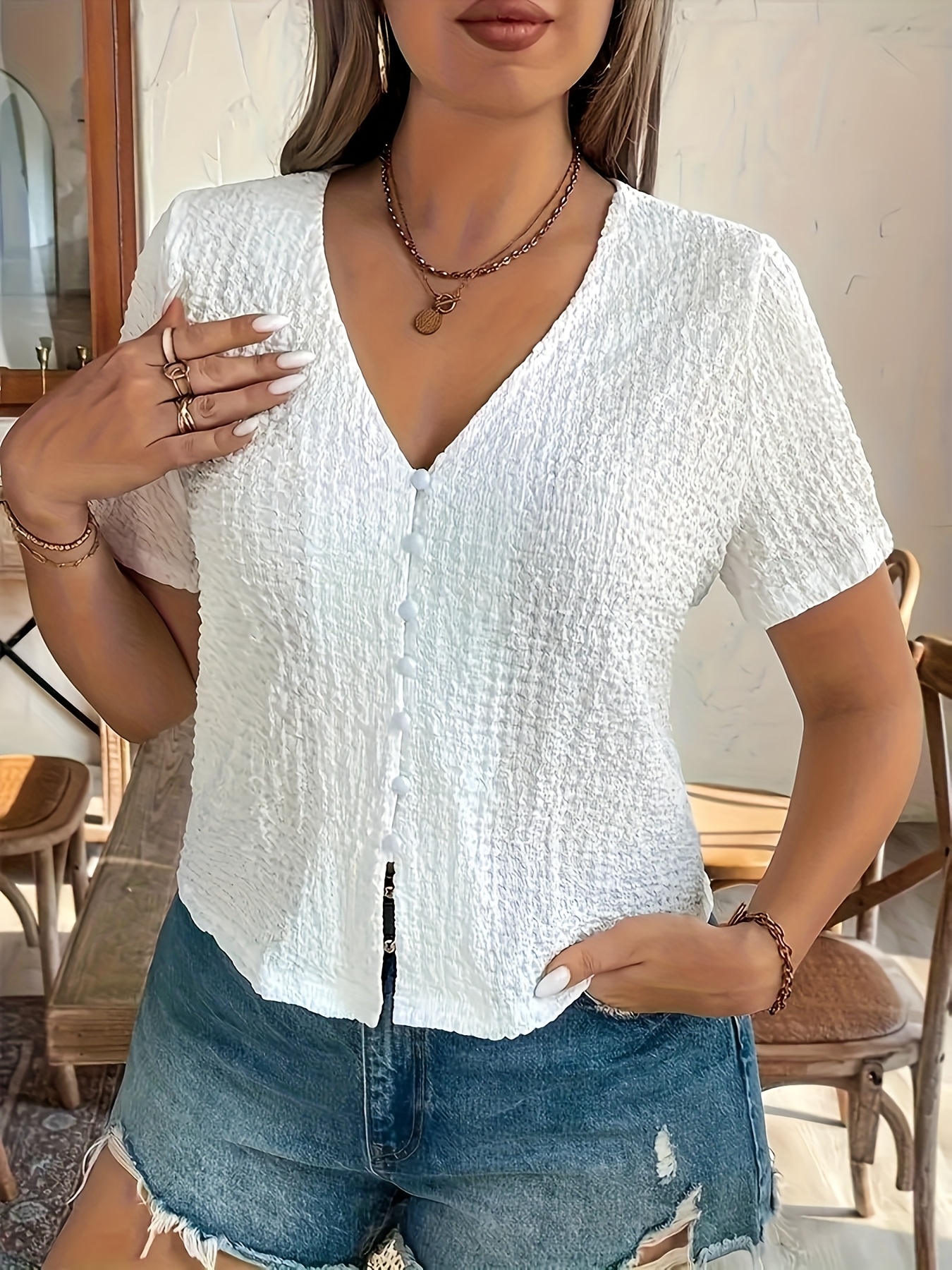 Women's Sleeveless Black V-Neck Top with Front Button Closure
