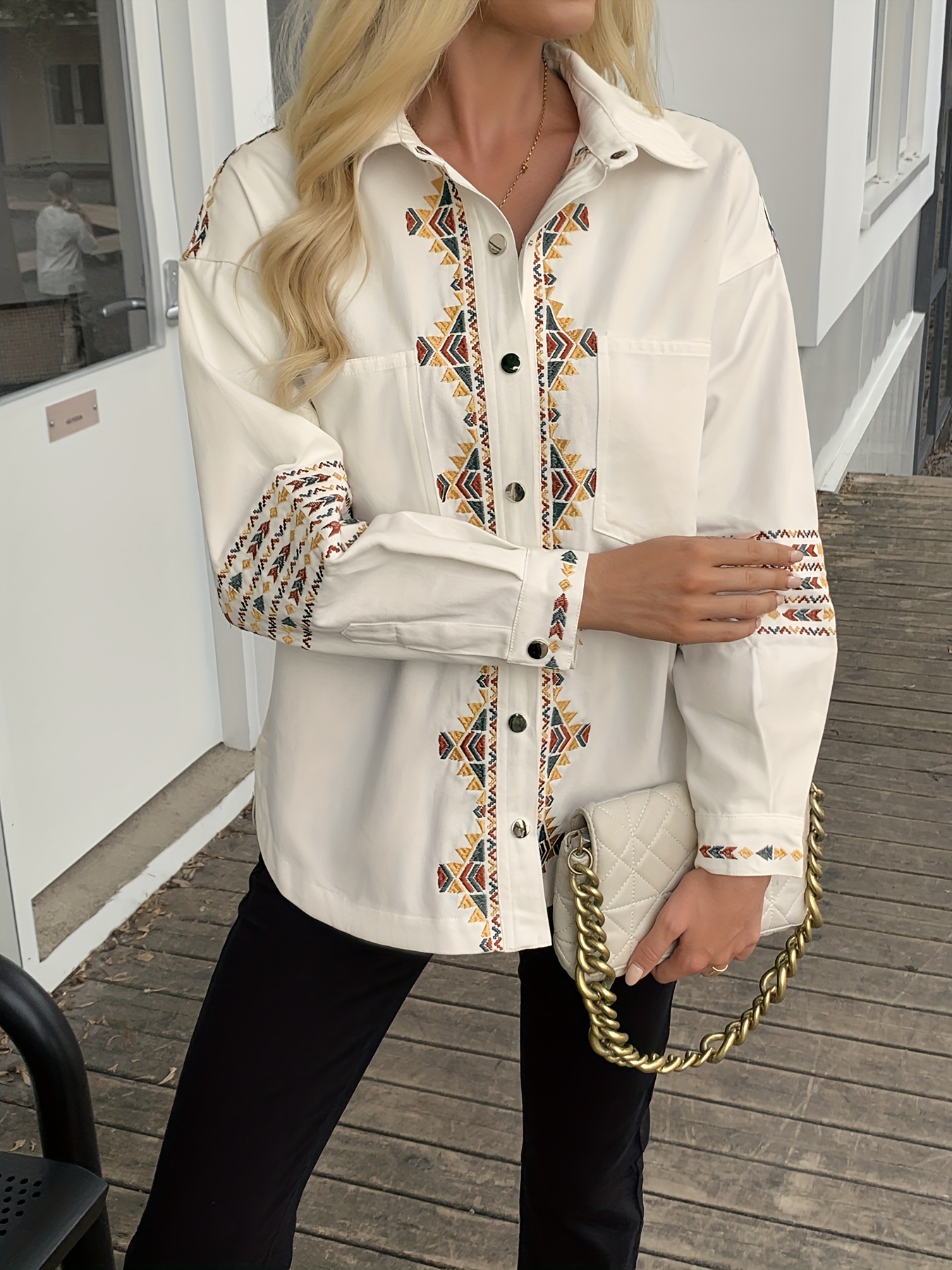 Women's Spring And Autumn Ethnic Style Printed Shirt with a Fashionable Front Placket