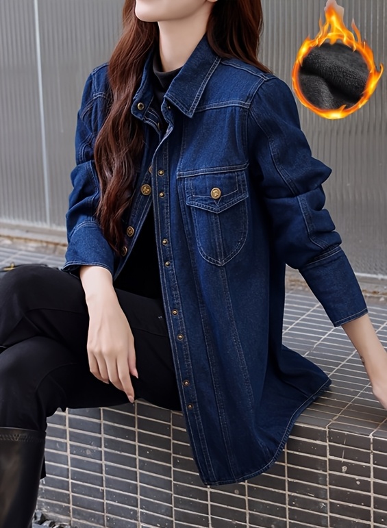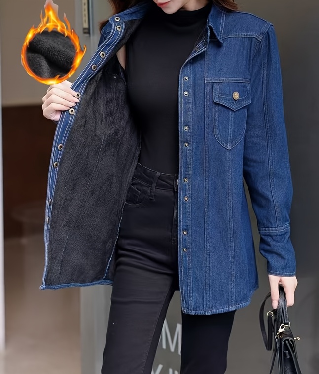 Women's Vintage-Inspired Thickened Denim Shirt - Long Sleeve, Button-Up, Non-Stretch Fabric